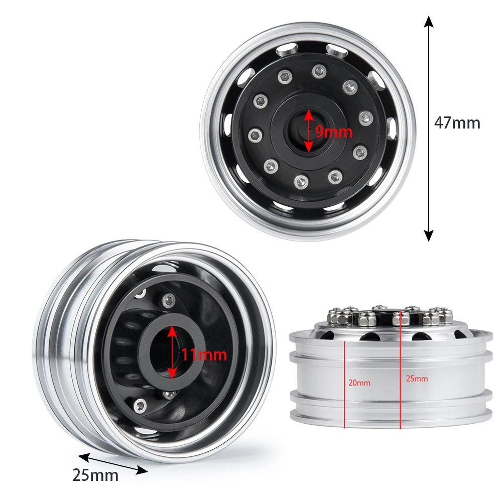 YEAHRUN 1/14 Tamiya обод переднего колеса из алюминиевого сплава Beadlock Ступица колеса для 1:14 Tamiya Радиоуправляемый трейлер трактор