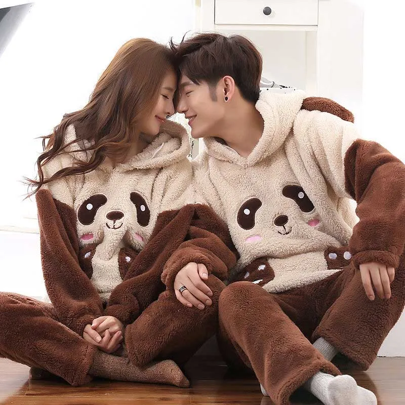 Унисекс, Пижама для взрослых и пар, Мужская зимняя бархатная Пижама, 2 предмета, теплая Фланелевая пижама с рисунком животных, милая Домашняя одежда с капюшоном