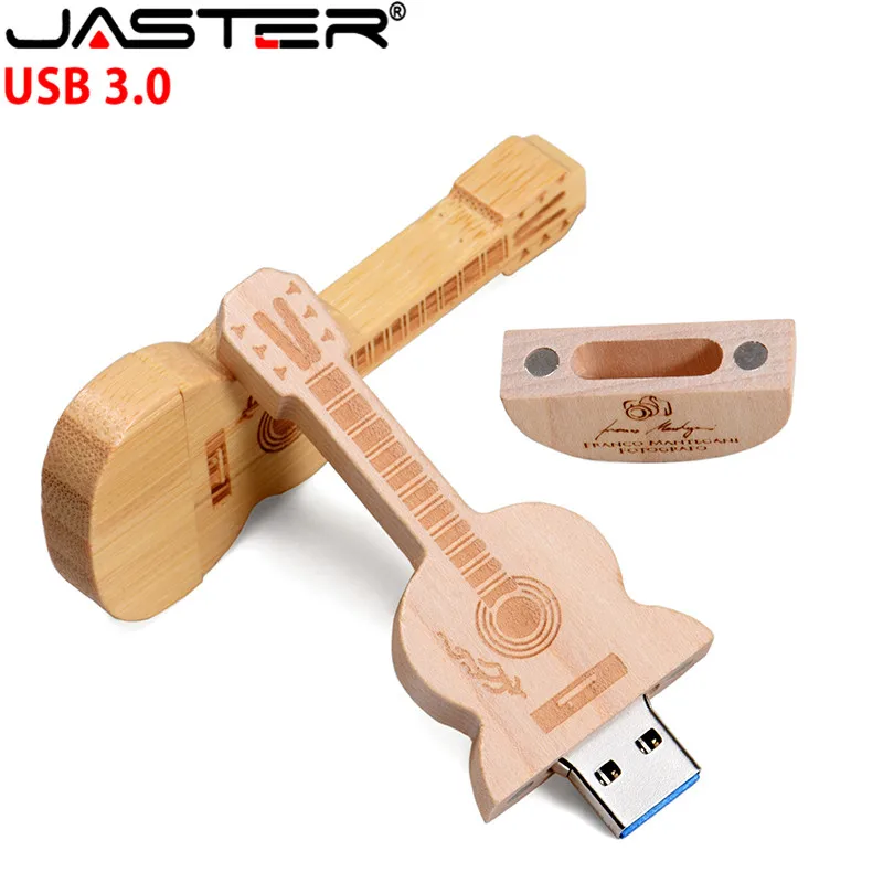 JASTER логотип на заказ деревянная Флешка в виде гитары usb 2,0 флеш-карта памяти 4 ГБ 8 ГБ 16 ГБ 32 ГБ 64 ГБ Подарочный металлический брелок для ключей