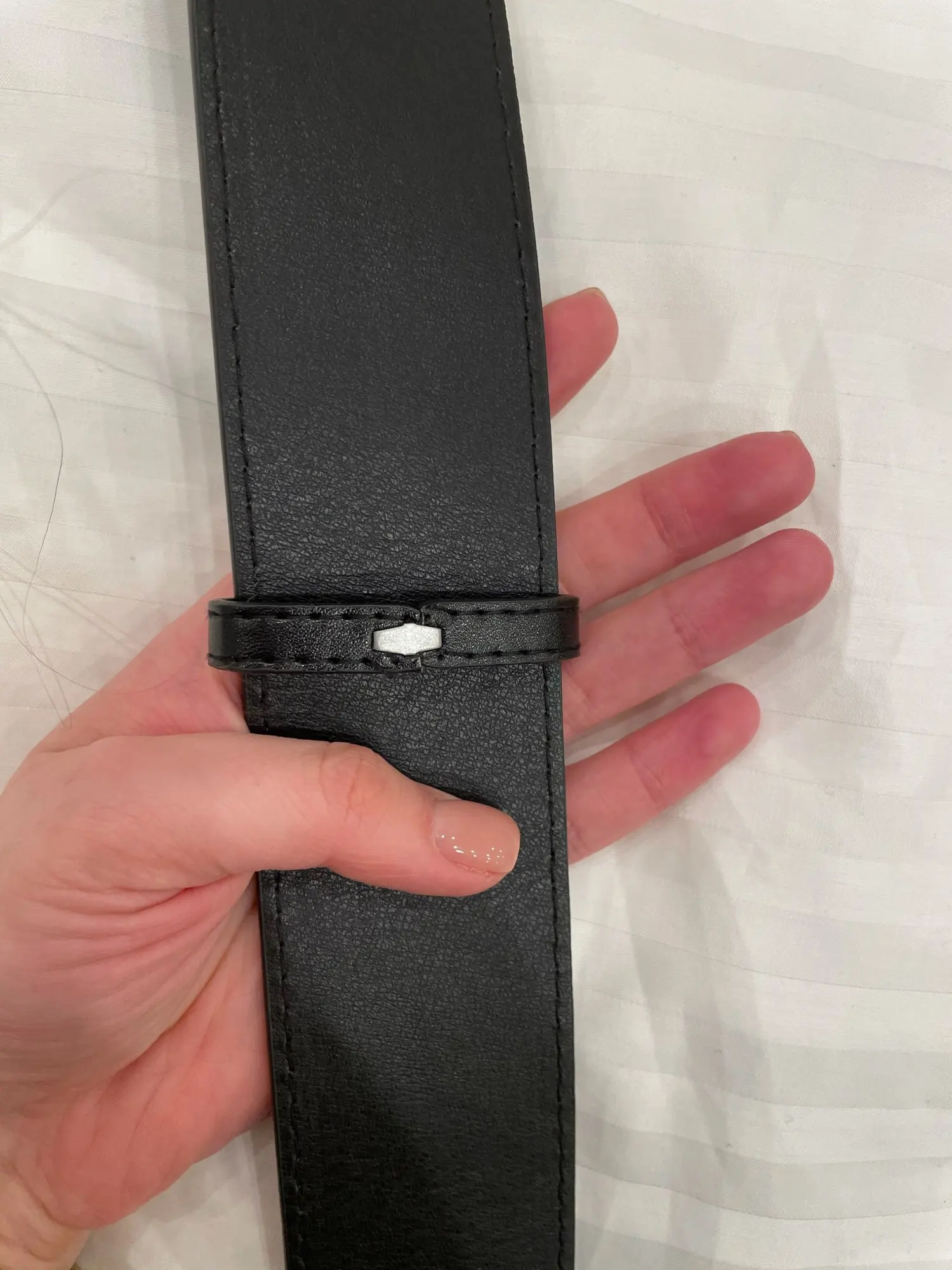 Ремень отличный! В точности как на фото, под кожу. Много отверстий, подошёл даже на маленькую талию (обычно приходится делать дырки самой). Выглядит дорого. Рекомендую :)