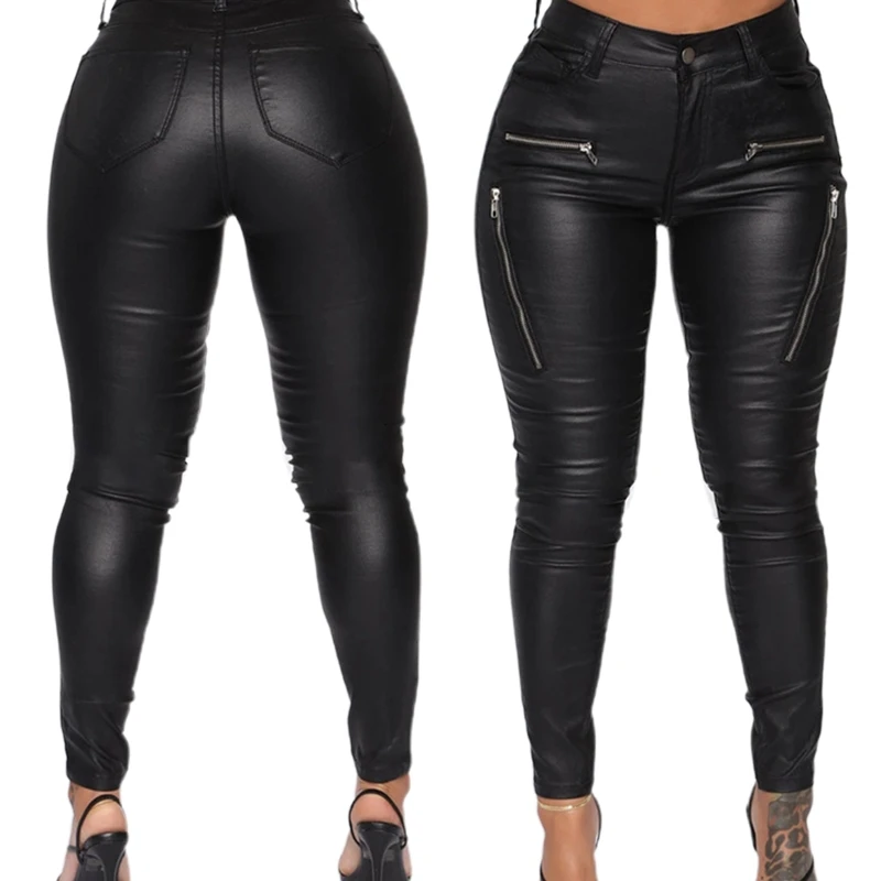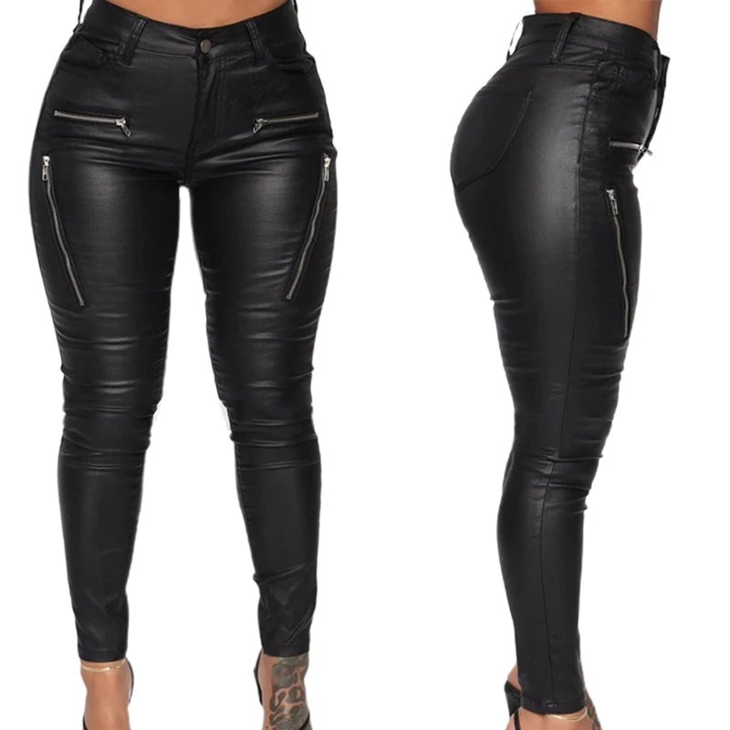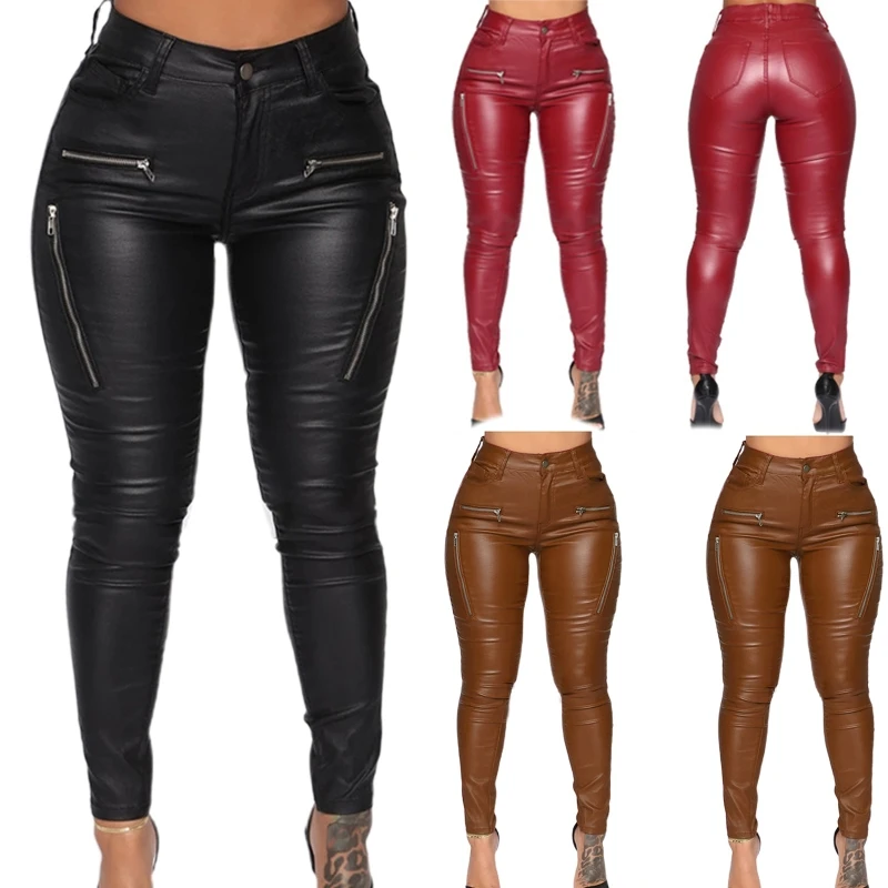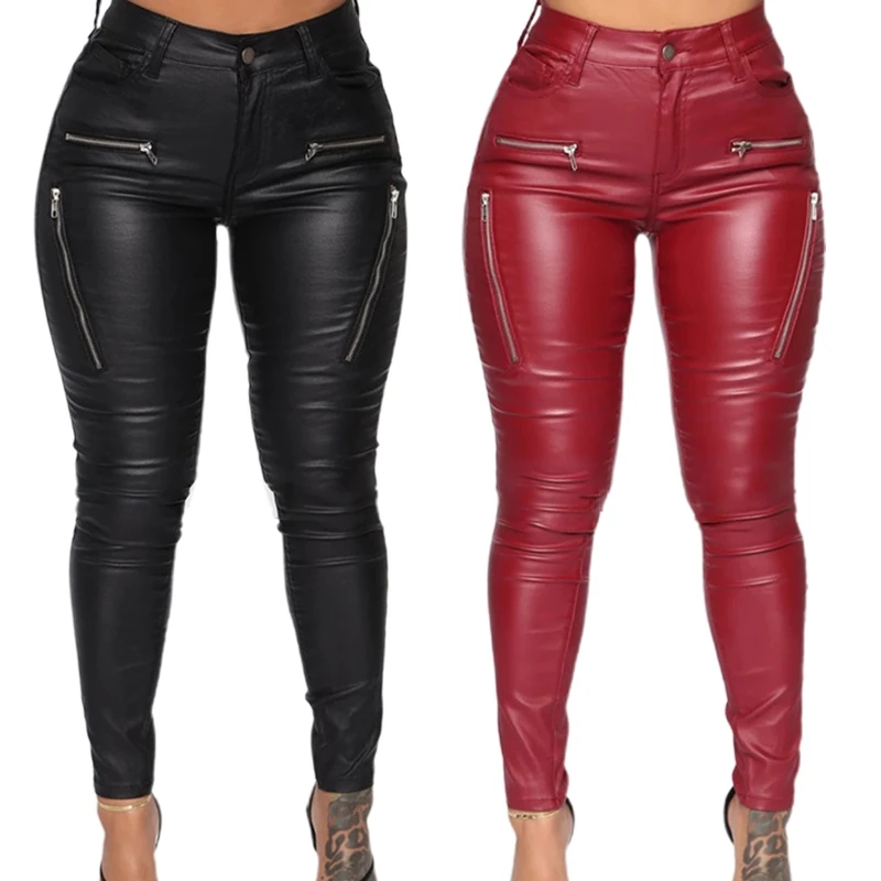 Сексуальные Эластичные Обтягивающие Брюки из искусственной кожи 2020 Женские однотонные леггинсы со средней посадкой узкие брюки-карандаш на молнии S-5XL