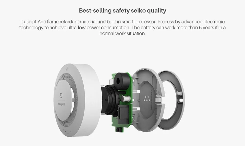 Xiaomi Mijia Honeywell Датчик дыма детектор сигнализации звуковой визуальный датчик дыма дистанционное управление Mi Home умное приложениеПримечание: 1. Этот датчик температуры и влажности изготовлен от бренда xiaomi ecological chain-Honeywell,Есть