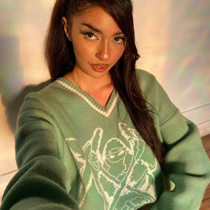 Пуловер женский трикотажный, с длинным рукавом и V-образным вырезом, Осень-зима, 2020