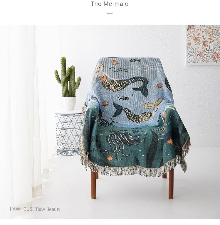 Скандинавский мультяшный диван-одеяло и пледы Русалка вязаное диван...