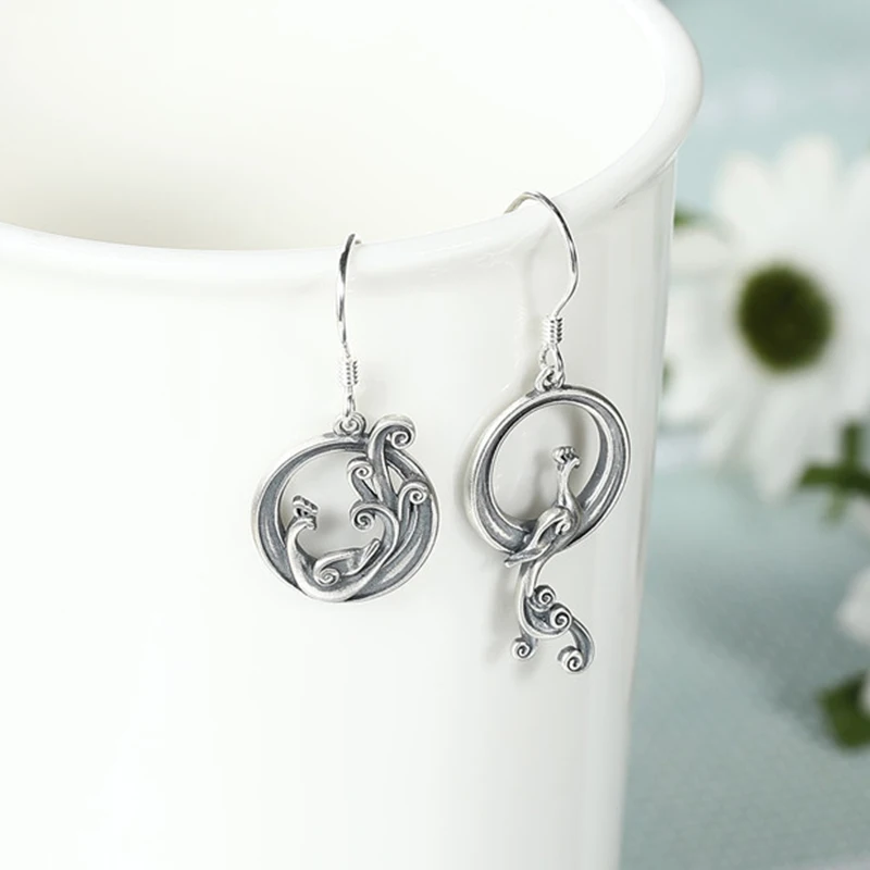 Женские Асимметричные висячие серьги V.YA, Винтажные серьги-подвески из стерлингового серебра 925 пробы в этническом стиле