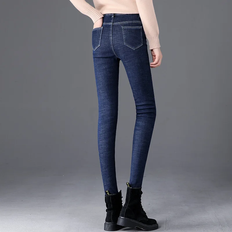 Плотные зимние теплые облегающие джинсы для женщин, женские вельветовые джинсовые брюки, уличные эластичные брюки, размера плюс