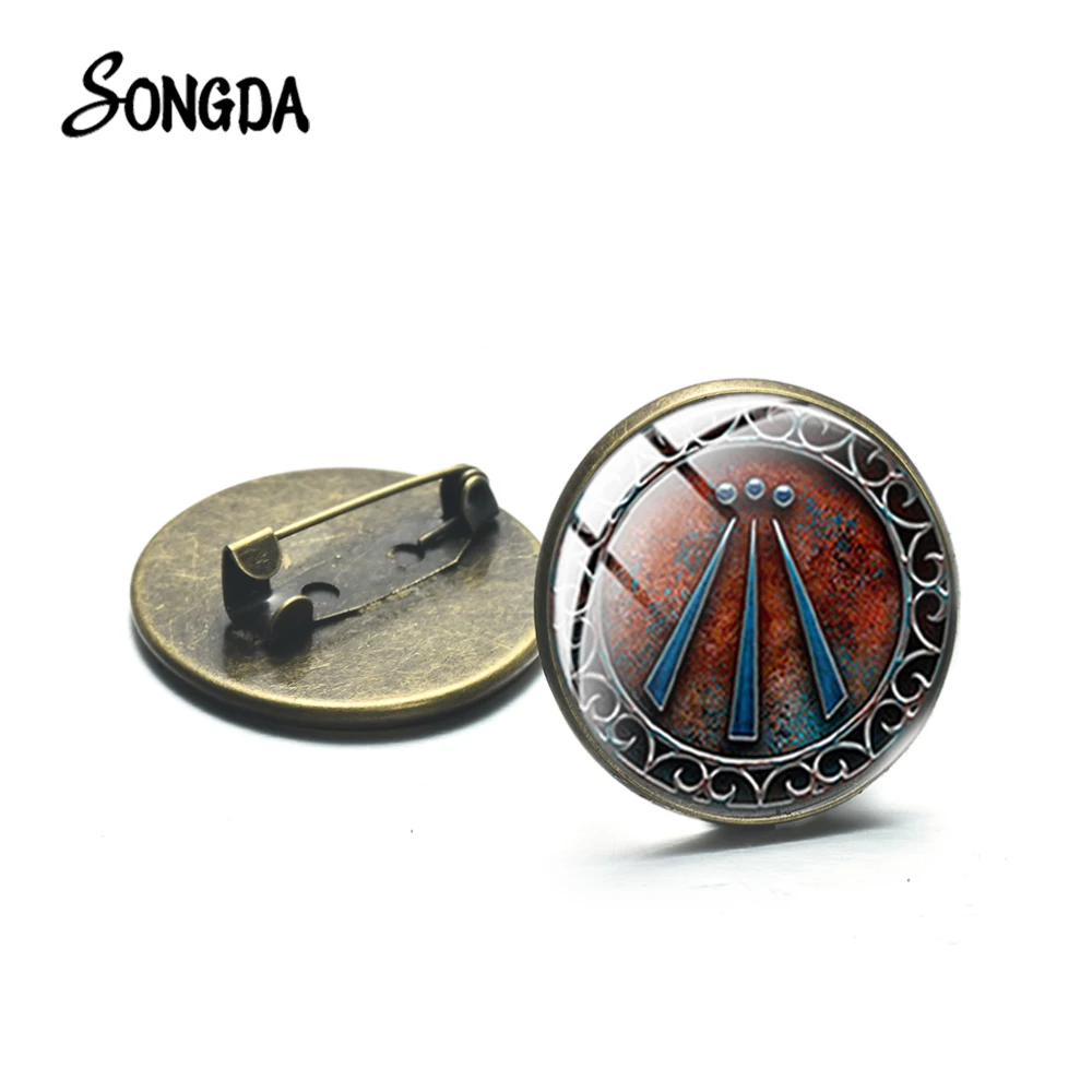 Ретро Awen друид брошь с символом античная бронза цвет картина стекло кабошон лацкан булавка рубашка одежда воротник декоративная булавка ювелирные изделия