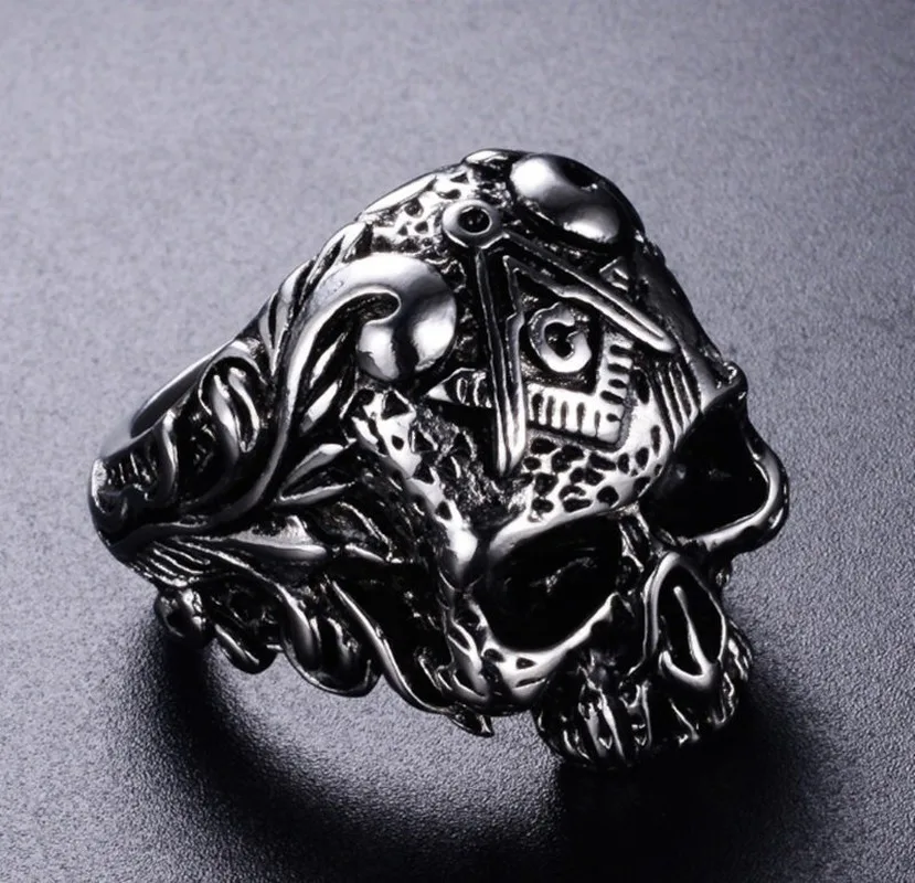 Модное кольцо в стиле масонского панка с черепом в стиле хип-хоп