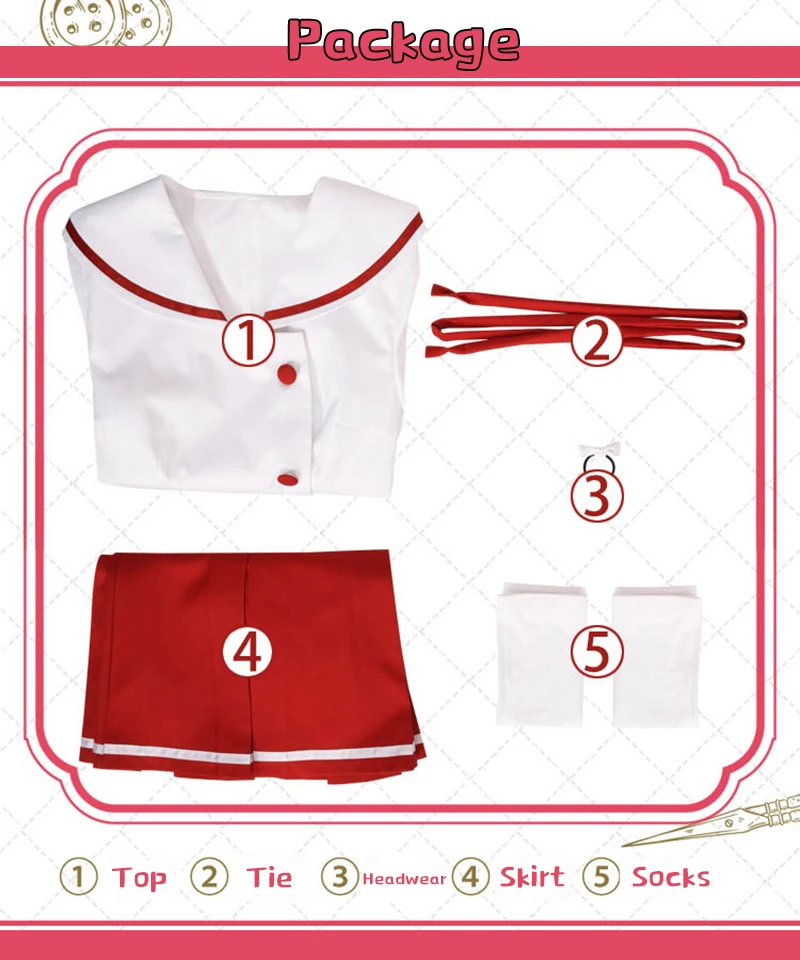 Посылка включает: топ + юбка + галстук + головной убор + носки