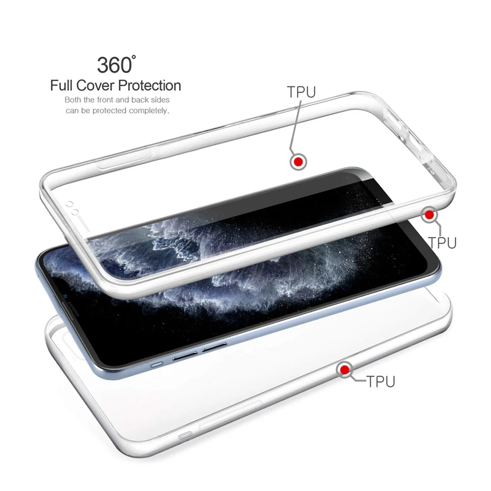 Чехол для iphone 12 pro max 360 полностью двойной силиконовый чехол для iphone 12 mini promax 12pro max прозрачный корпус Передняя Задняя крышка