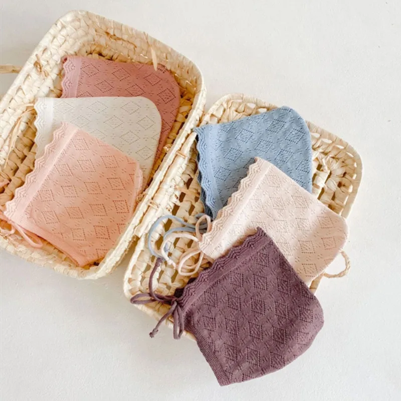 Шапочка детская, хлопковая, однотонная, кружевная, для детей 0-24 месяцев