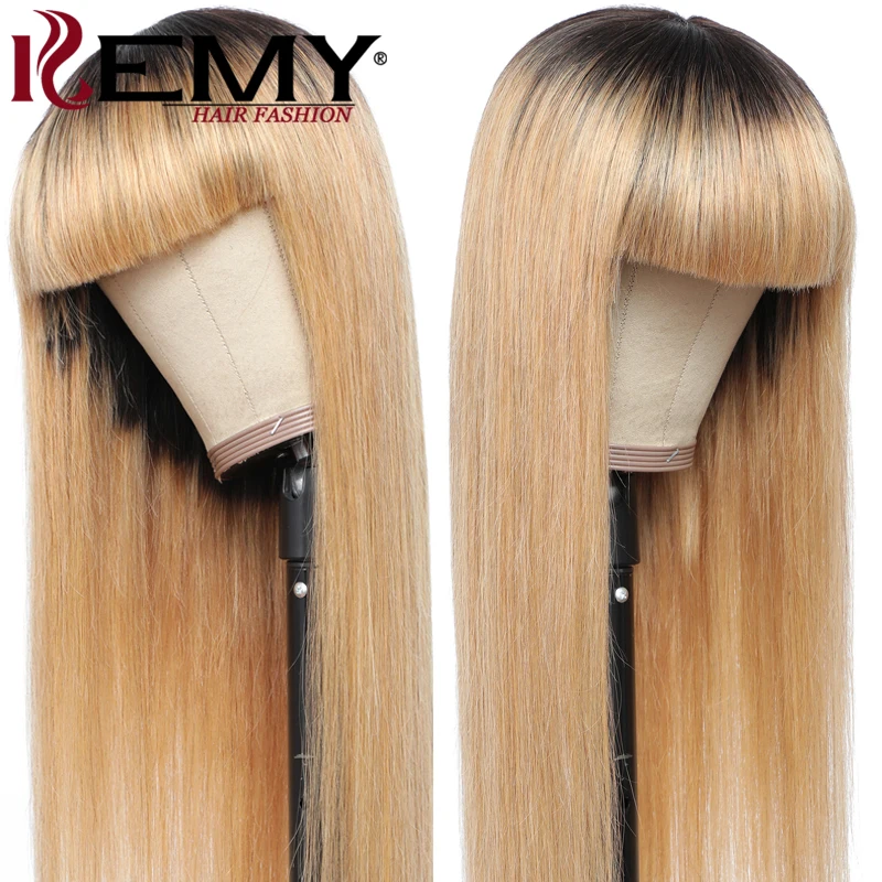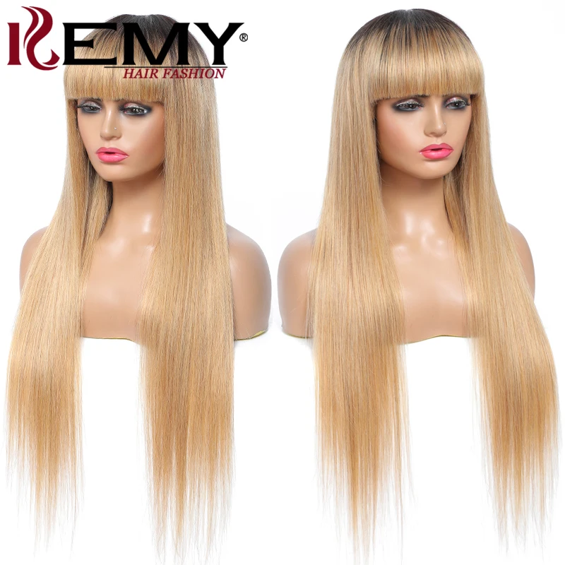 Бразильские прямые человеческие волосы парик с челкой Омбре блонд 99J Берг полная машина челка парик Remy человеческие волосы парики для женщин 150%