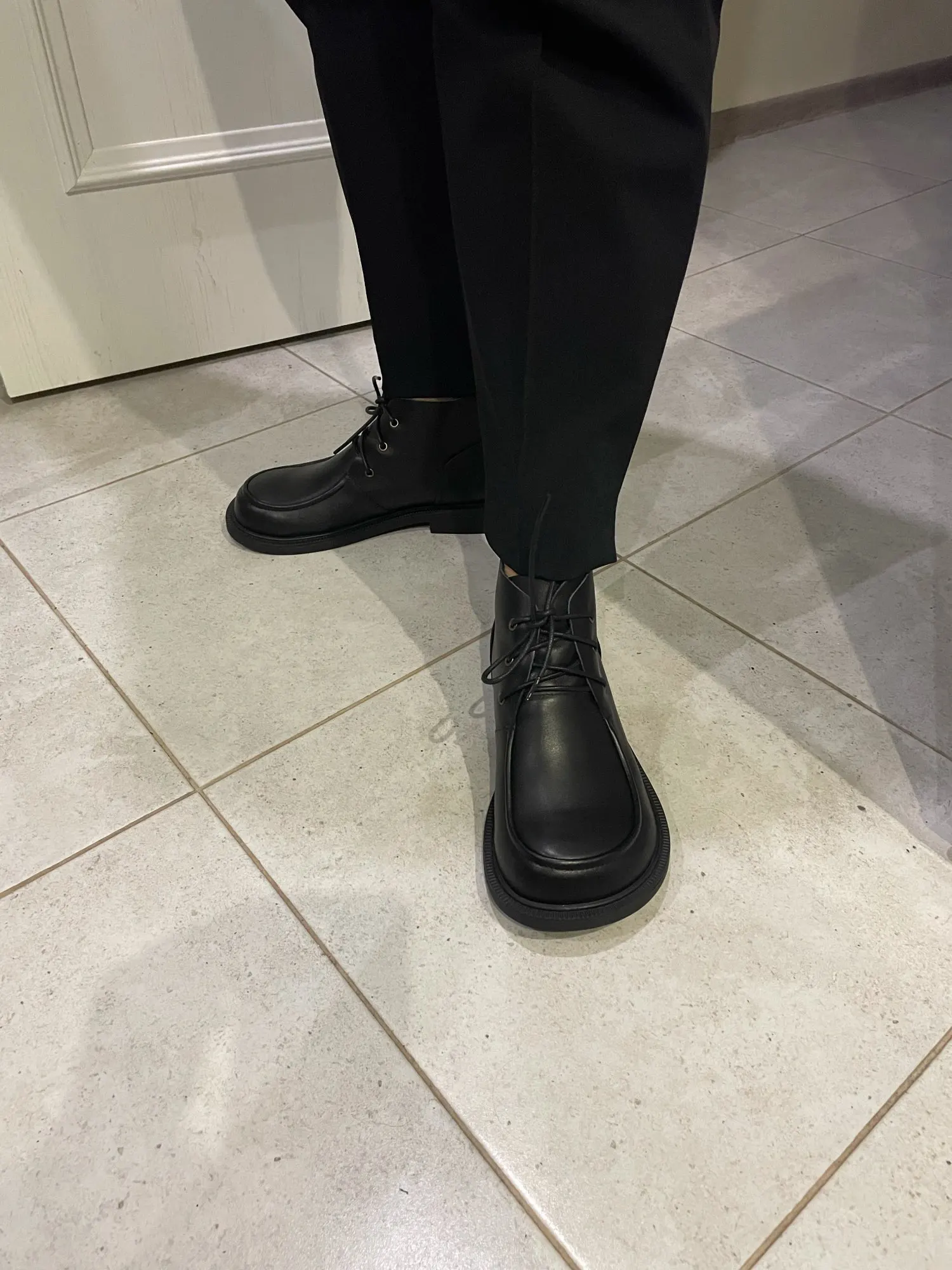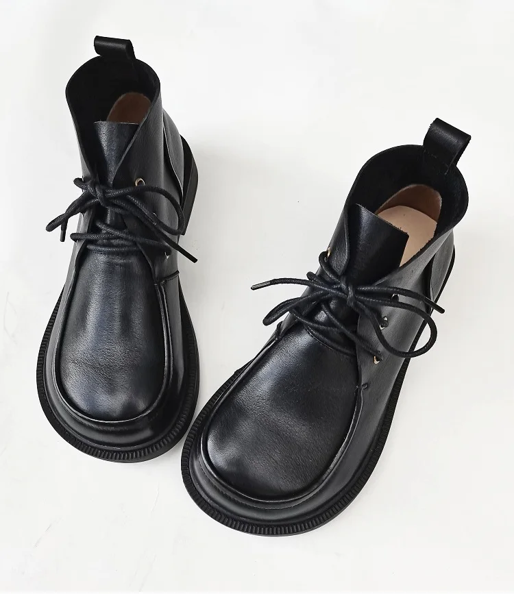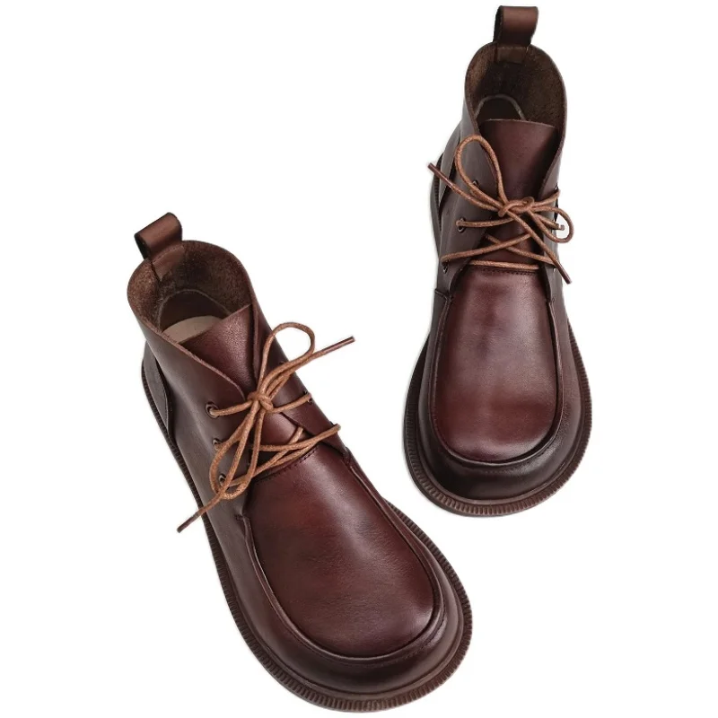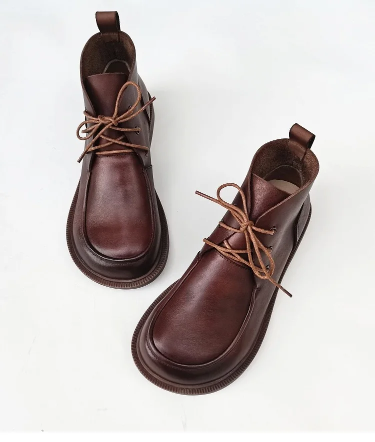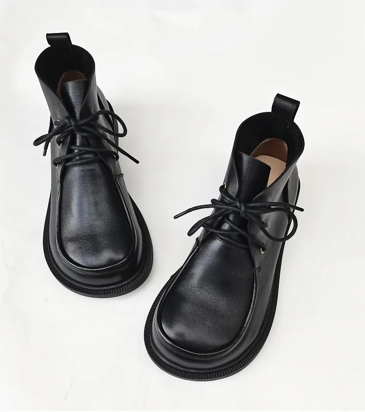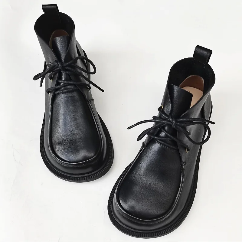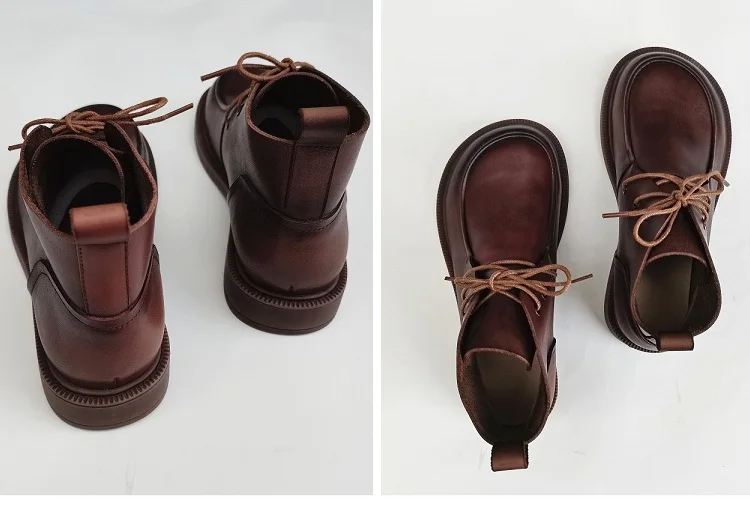 Женские ботильоны из натуральной кожи, с круглым носком, на шнуровке