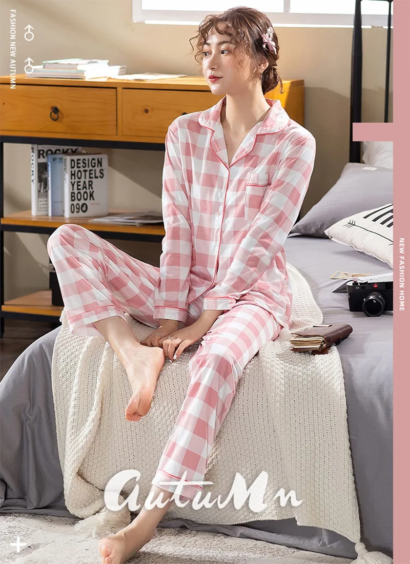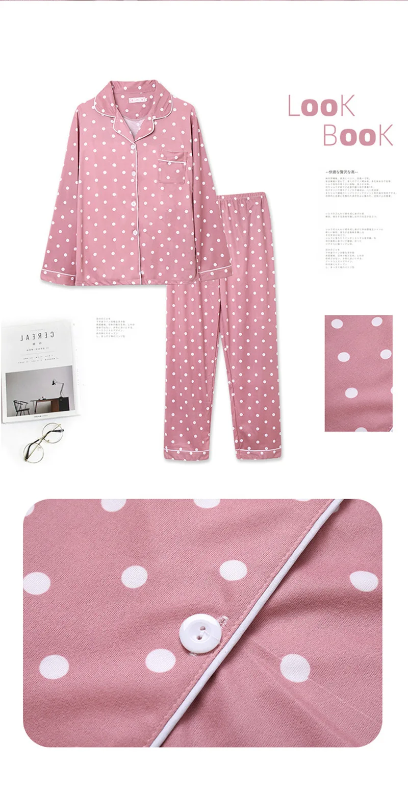 Одежда для сна, женские пижамные комплекты, домашняя одежда с длинным рукавом, костюм для женщин, комплект из двух предметов, женская пижама на пуговицах, пижама, одежда в горошек