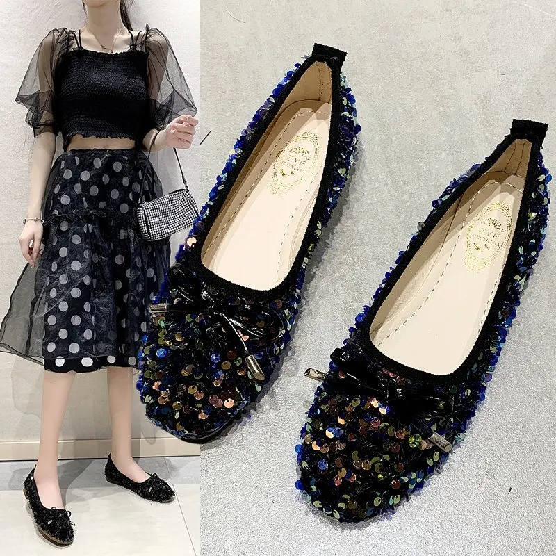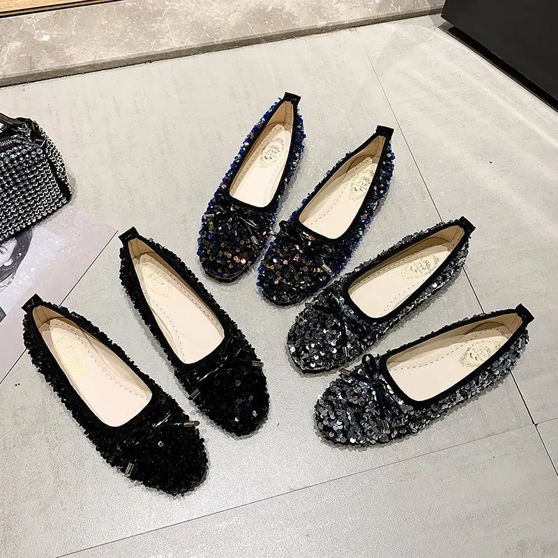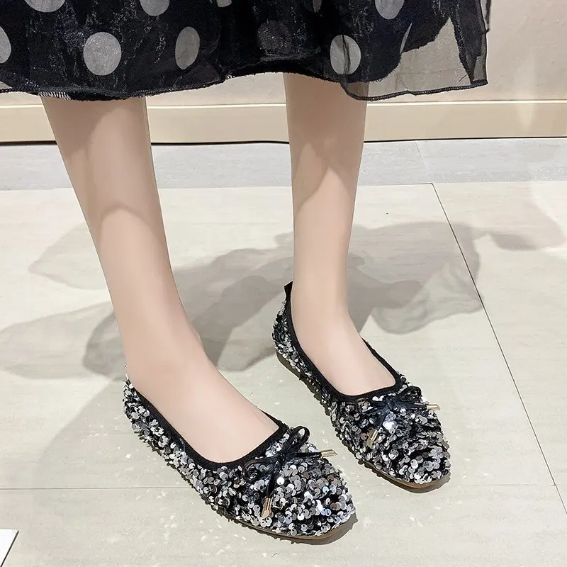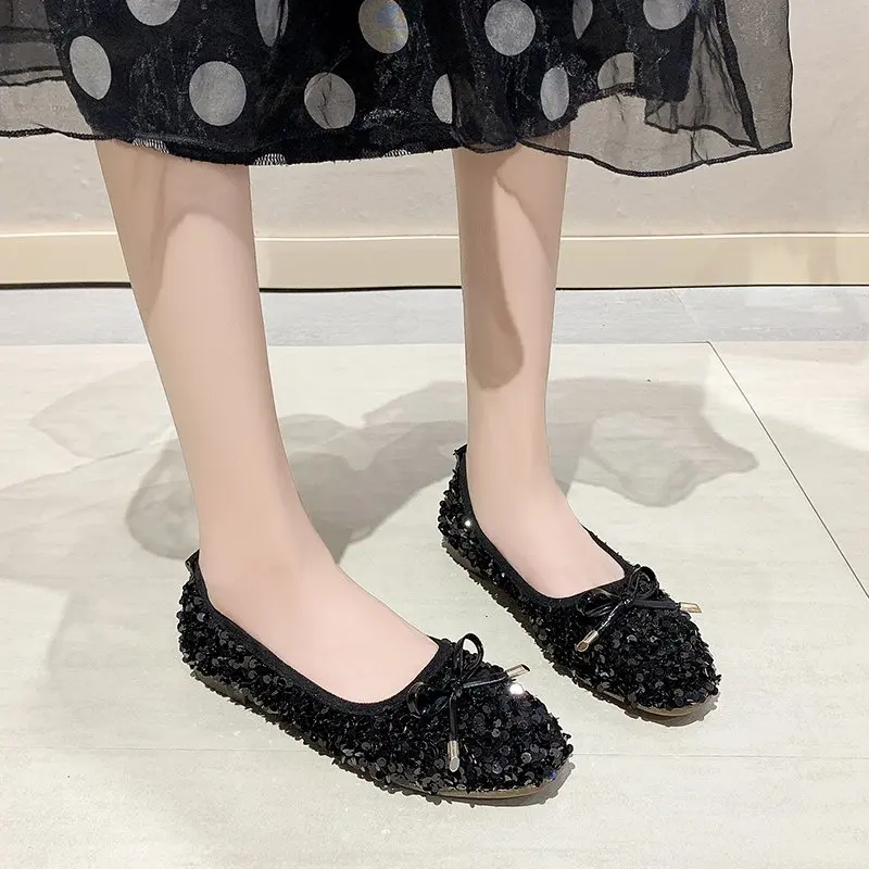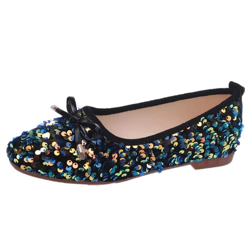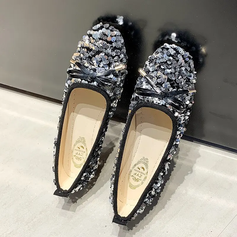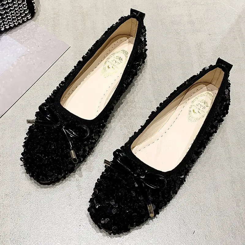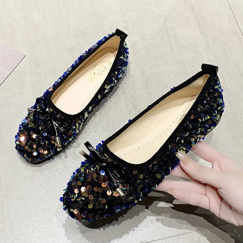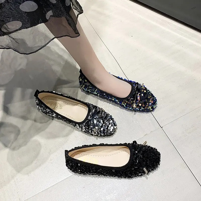 Демисезонные женские туфли на плоской подошве; Слипоны; Лоферы с бантом; Блестящие туфли принцессы для девочек; Милые мокасины; Черные туфли; zapatos mujer; 8678L