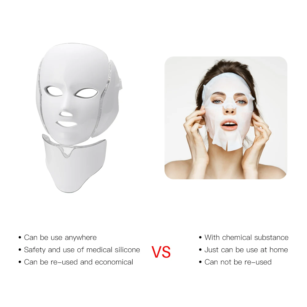 7 цветов фотон для терапии красоты светодиодный светильник для маски для лица Уход за кожей омоложение морщин Удаление прыщей уход за кожей Шеи спа-инструмент