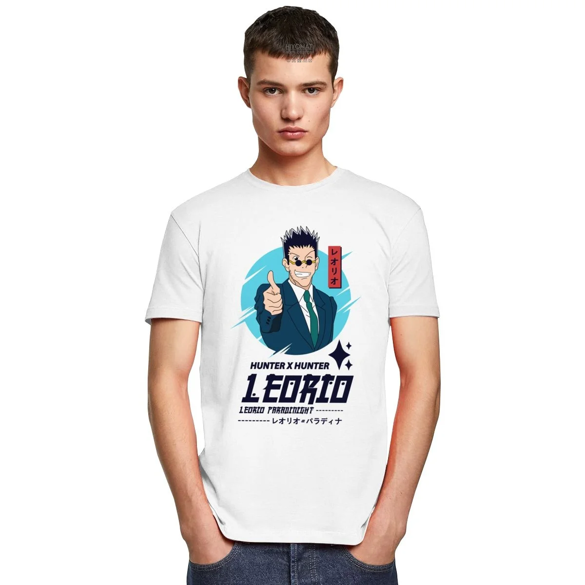 Классическая новинка Hunter X футболка с изображением охотника, хлопковая футболка с коротким рукавом, уличная одежда, Аниме Манга, футболка Leorio, Радужный Топ