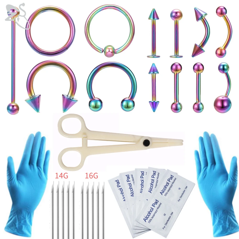Набор ZS инструмент для пирсинга тела, 12-20 г, профессиональные иглы для пирсинга, зажим перчатки, инструменты, Набор Для Пирсинга Ушей, Козелка, спирали, носа, пупка