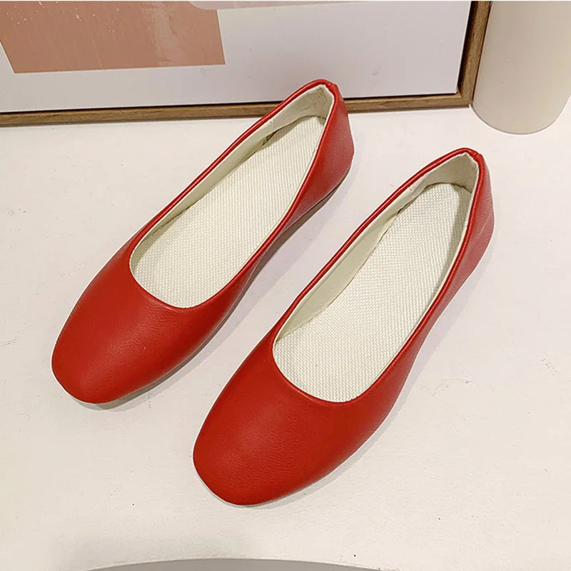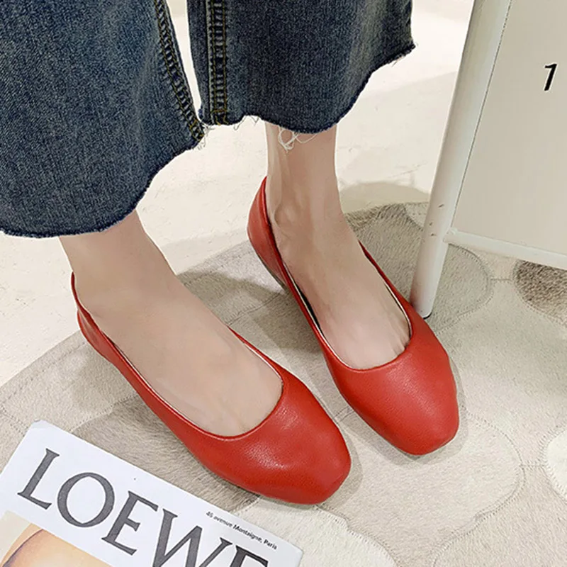 Туфли женские на плоской подошве, квадратный носок, без застежки, у...