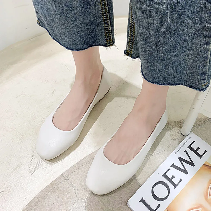 Туфли женские на плоской подошве, квадратный носок, без застежки, лоферы, удобная обувь, белые, большие размеры