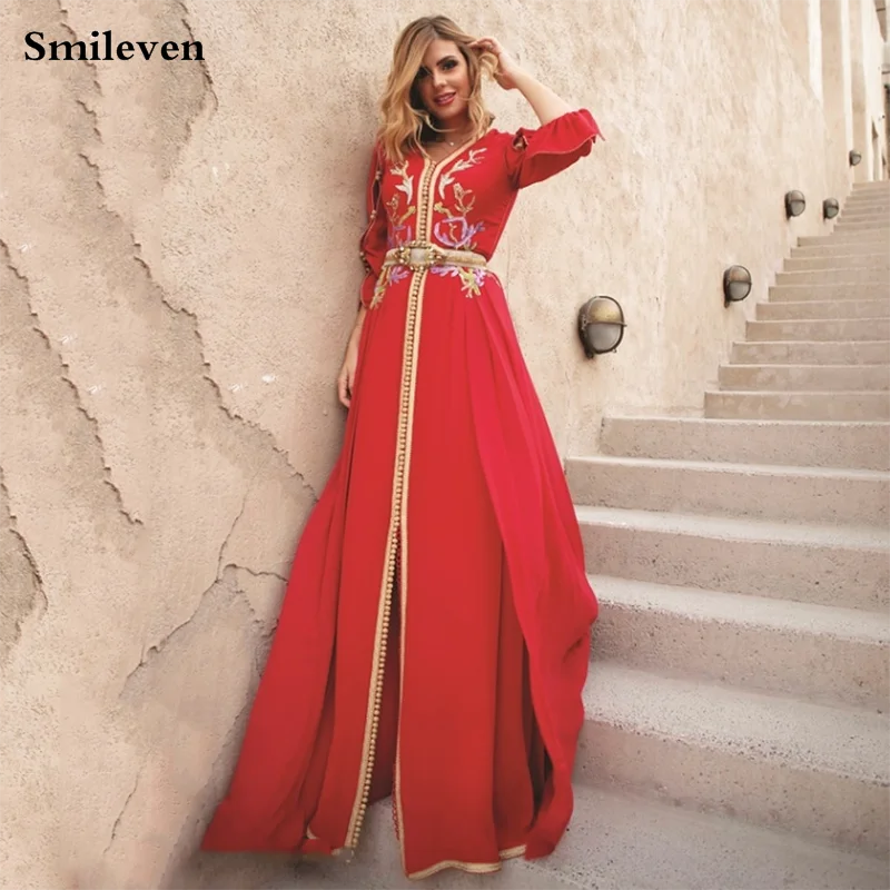 Марокканское платье-Кафтан Smileven, вечернее платье с V-образным в...