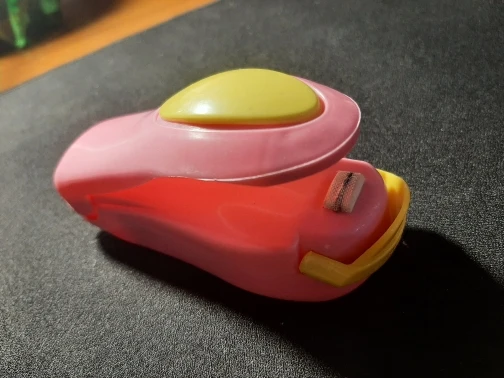 Перед тем как крепить на холодильник закрепите лучше магнитик. У меня магнитик остался на холодильнике, а машинку я по полу собирала. Собрали, пока работает. Тонкие пакетики прожигает.