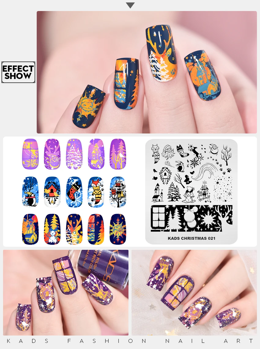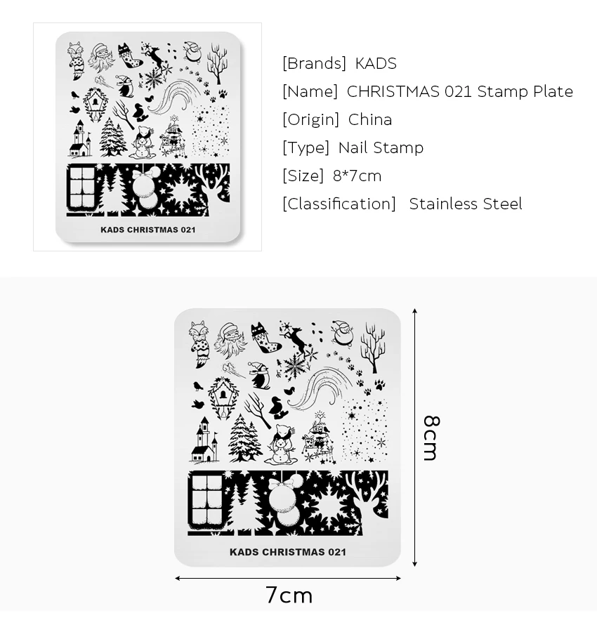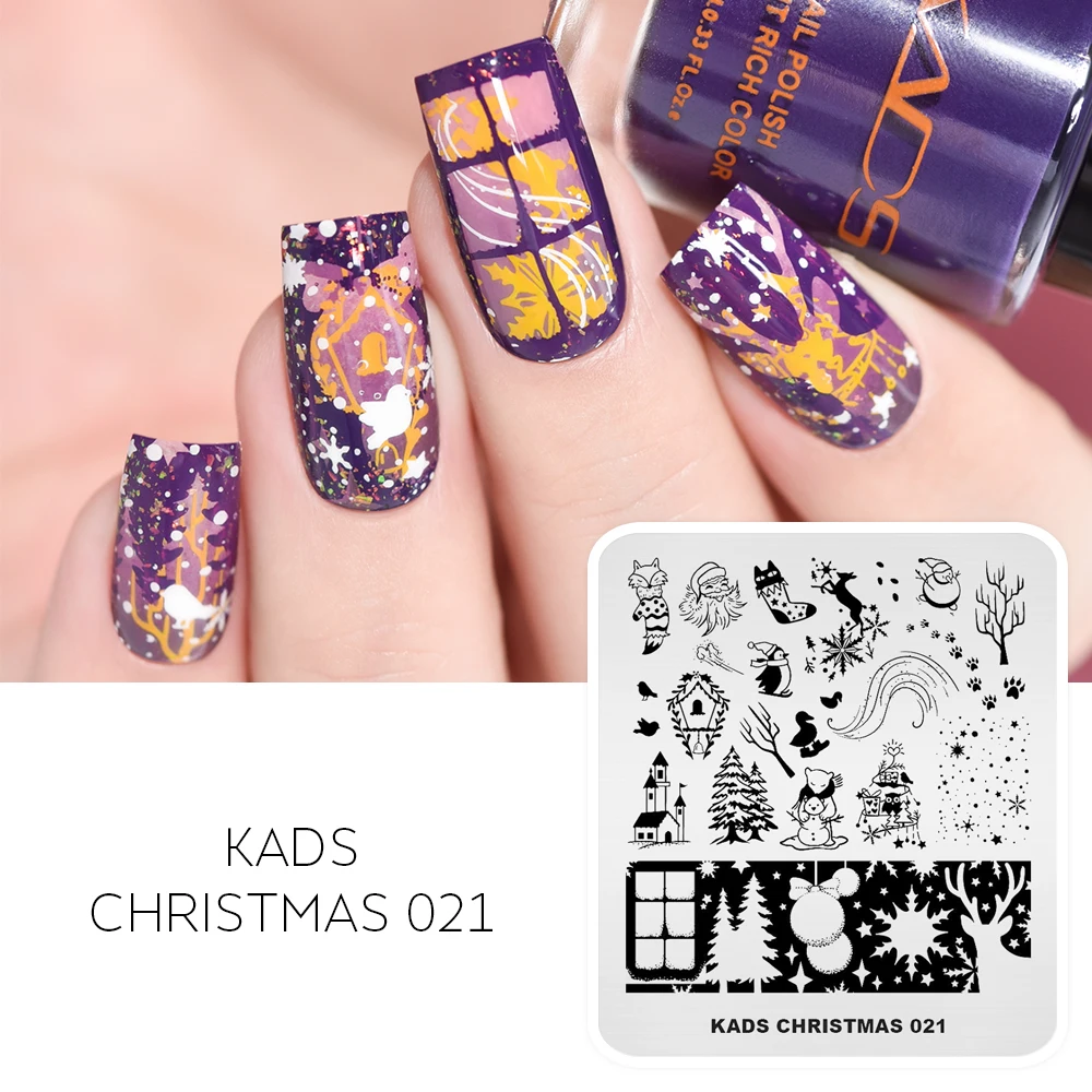 KADS стальная пластина для штамповки ногтей Рождественская снежинка снеговик дерево колокол полировка изображений трафарет для дизайна ногтей шаблон формы инструмент для украшения