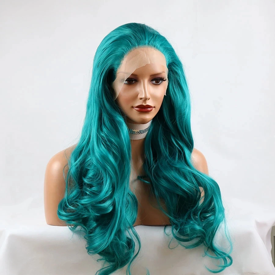 Длинные свободные волнистые синтетические кружевные передние парики...