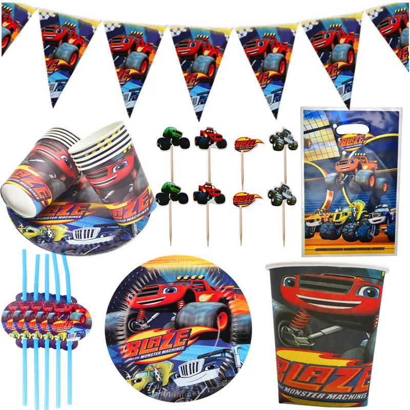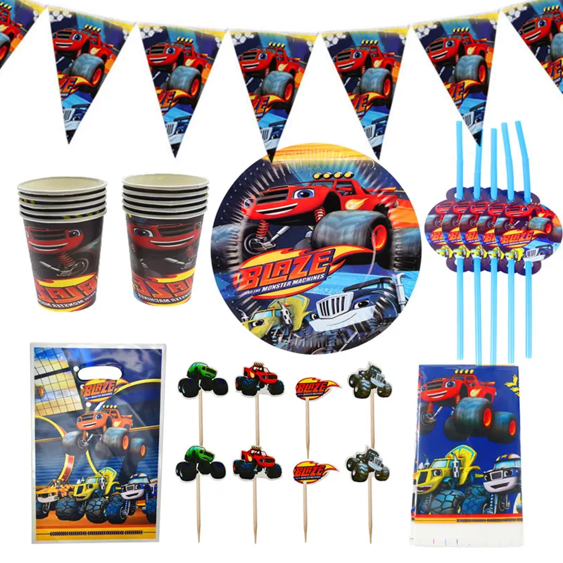 Машина Blaze and Monster, украшение для темативечерние автомобиля, бумажная посуда баннер, тарелке, чашке, в подарок, сумка, аксессуары для вечерние