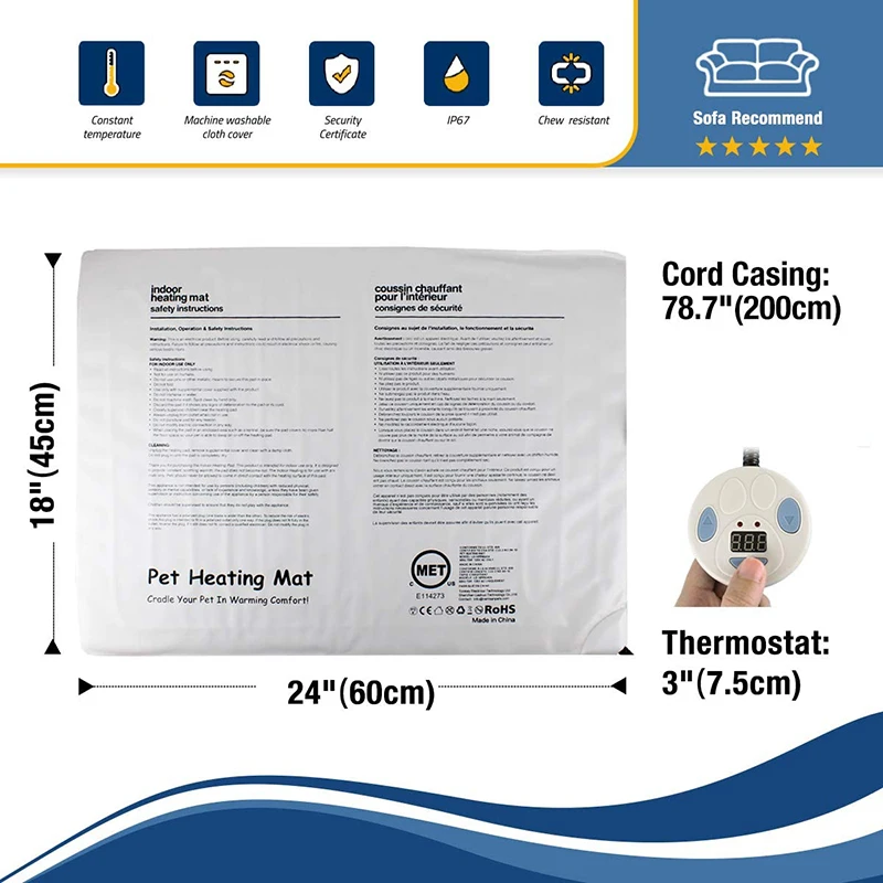 Электрическая грелка для домашних животных Benepaw, уютный съемный коврик, водонепроницаемая кровать для собак, 7 уровней, регулируемая температура, устойчивый к жеванию шнур
