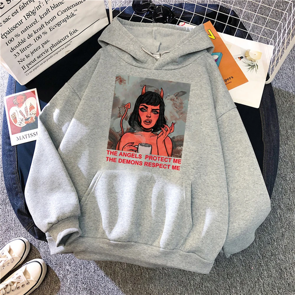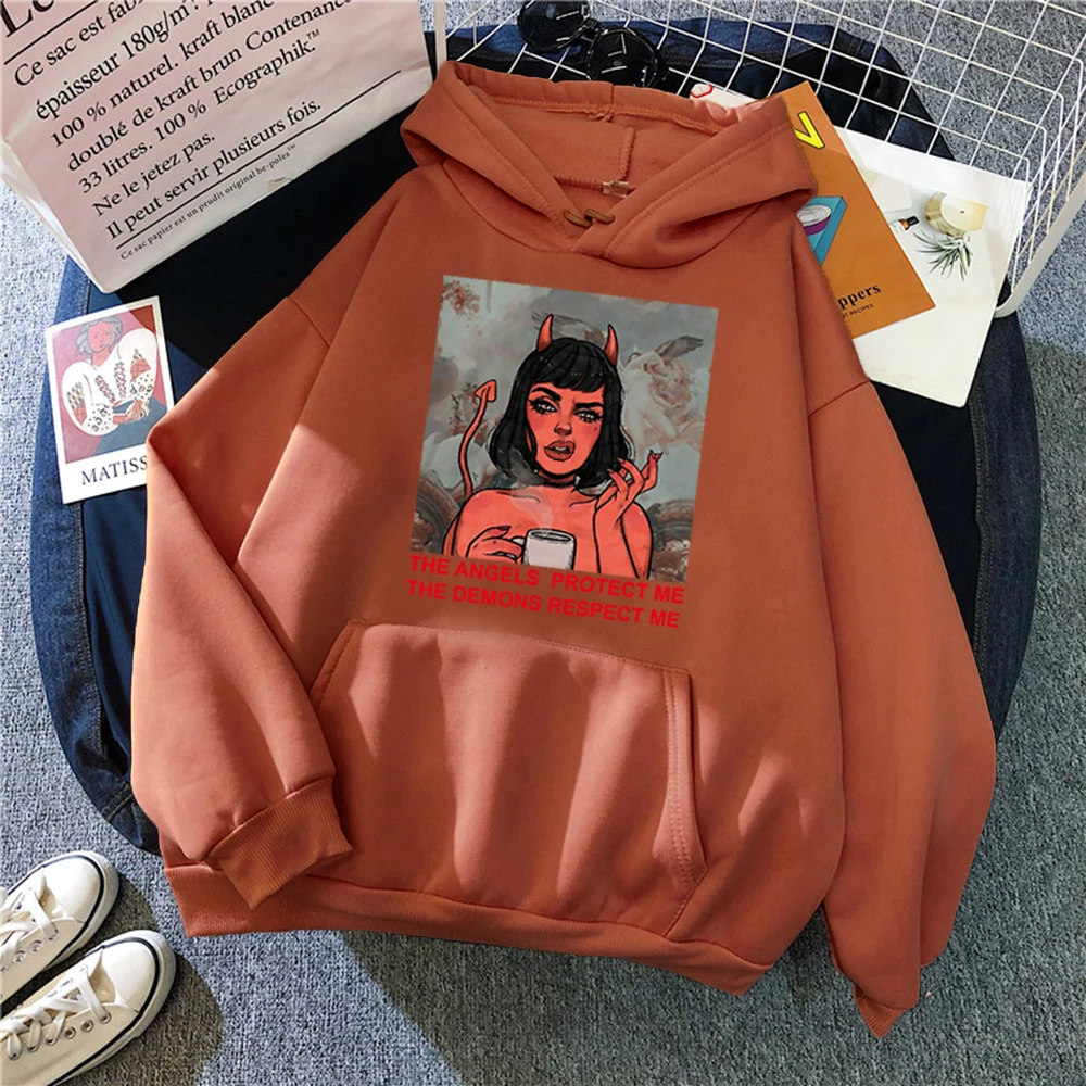 Пуловер с персональным принтом для девочек с изображением маленького дьявола, Мужская Удобная модная мужская толстовка, Корейская повседневная мужская толстовка с капюшоном