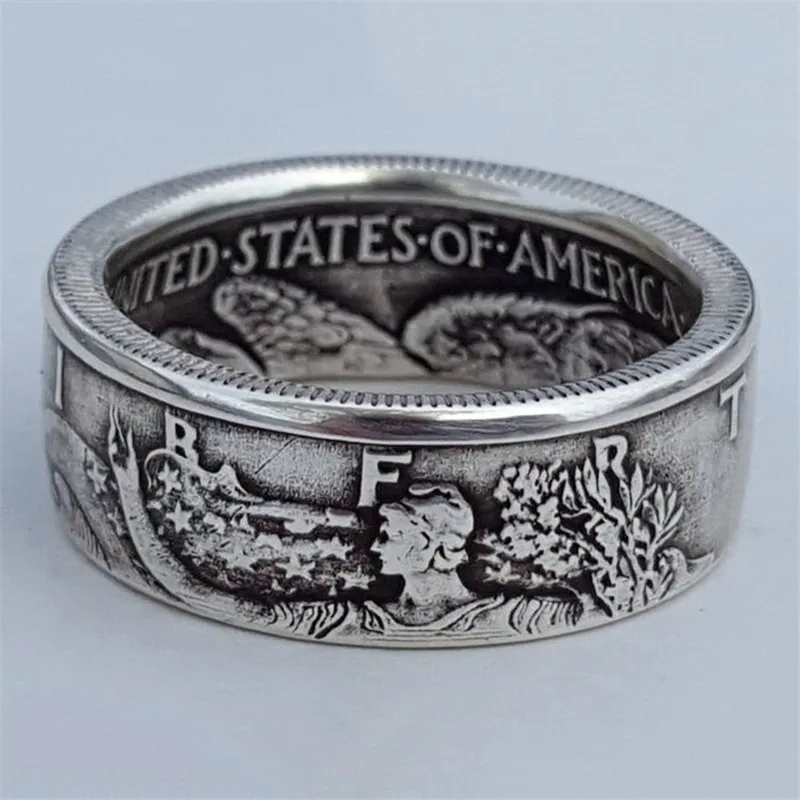 Мужские кольца с монетами в форме полудоллара серебряного цвета, ви...