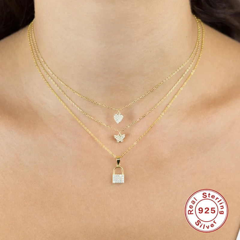 Автоклав INS CZ Циркон замок 925 Серебряное ожерелье для женщин 202...