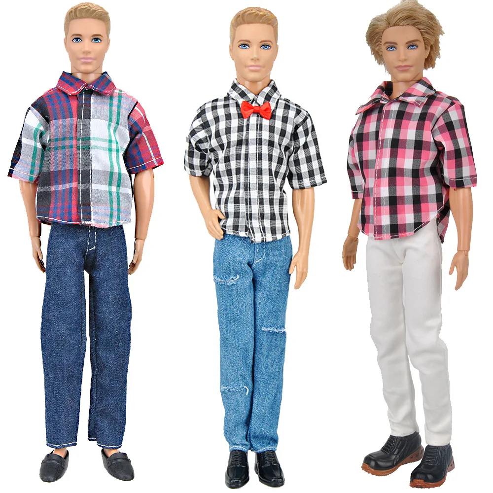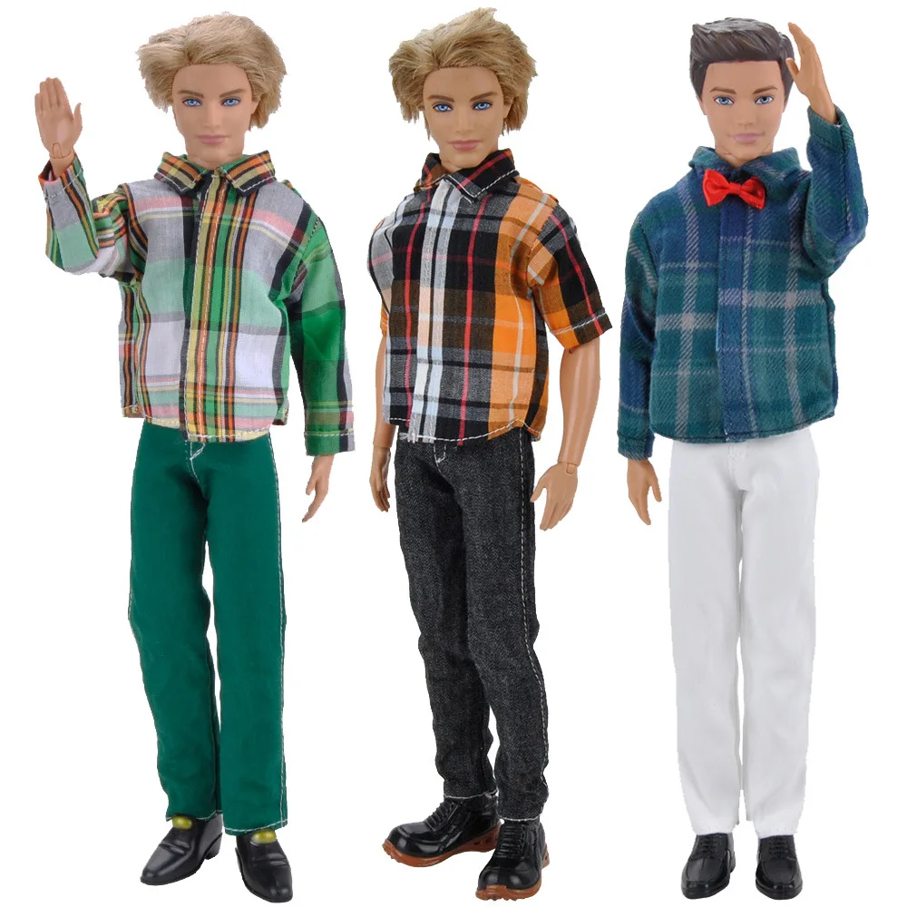 3 шт.компл. Одежда для Кена костюм ручной работы повседневная одежда клетчатая рубашка брюки Кен парень Кэн Кукла Одежда Костюм Куклы Аксессуары