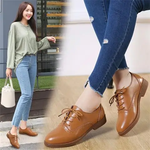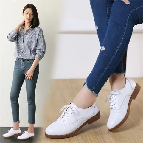 Туфли LIHUAMAO женские из бычьей кожи, удобные повседневные туфли на плоской подошве, Дерби, со шнуровкой, с круглым носком, офисная обувь для вечеринок