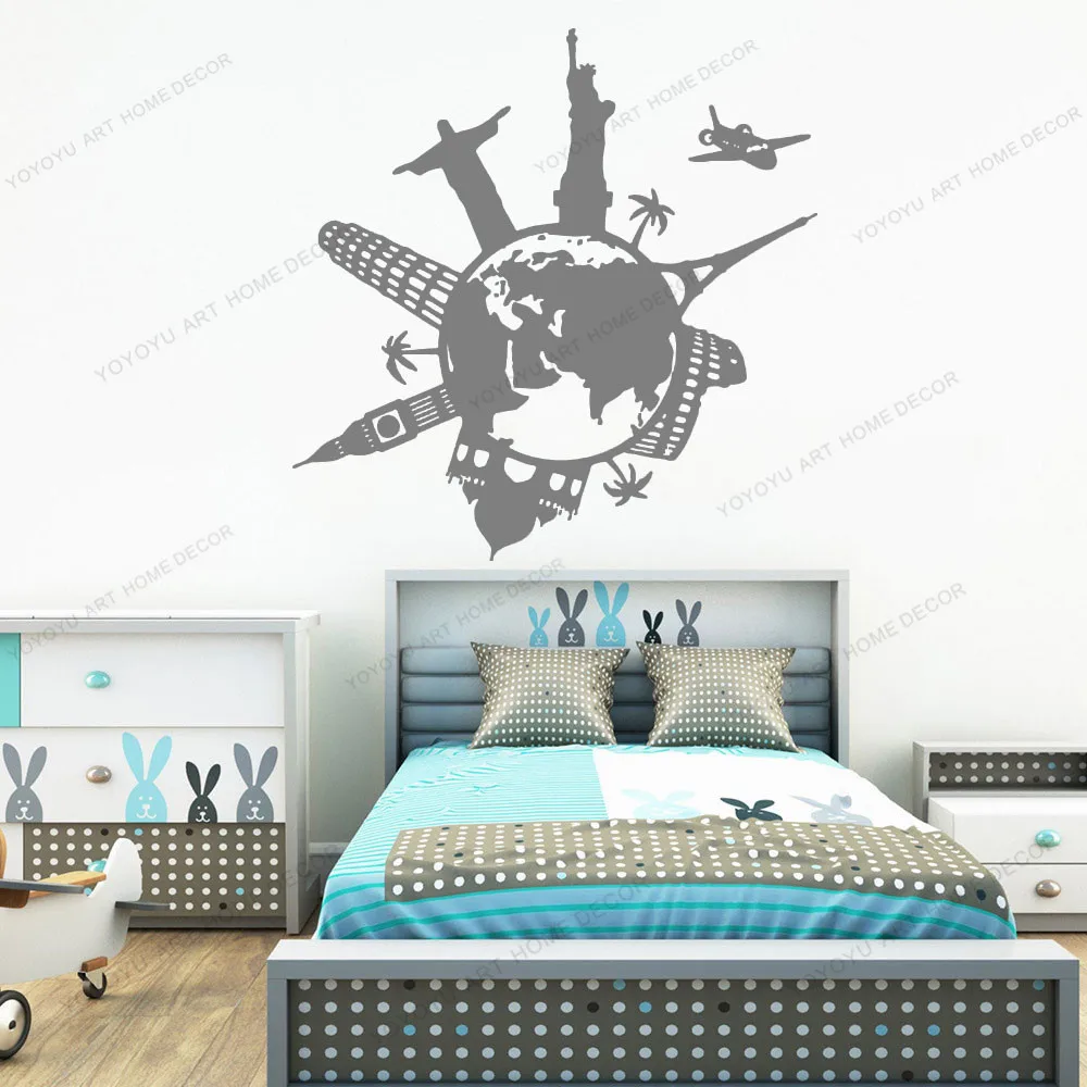 Карта мира путешествия Город Силуэт городской пейзаж фотообои континенты отпуск географы CX604