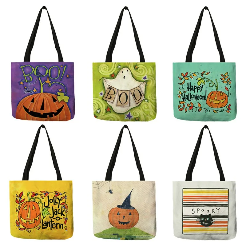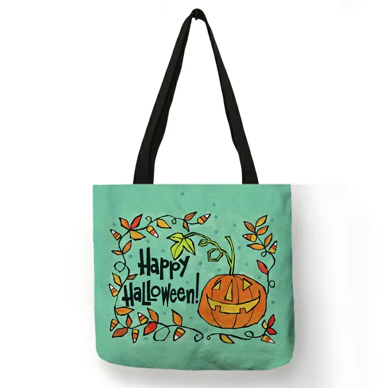 Счастливый Хэллоуин большая емкость Сумки для покупок женские тканевые сумки милые Мультяшные веточки дерево приведение бу Тыква Печать сумки на ремне