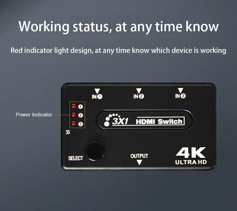 H3S1Min-S переключатель 3 в 1 выход видео коммутатор Поддержка со сверхвысоким разрешением Ultra HD, 4K, 1080P Аудио EDID экстрактор с ИК-пультом дистанционного Управление Мощность адаптер