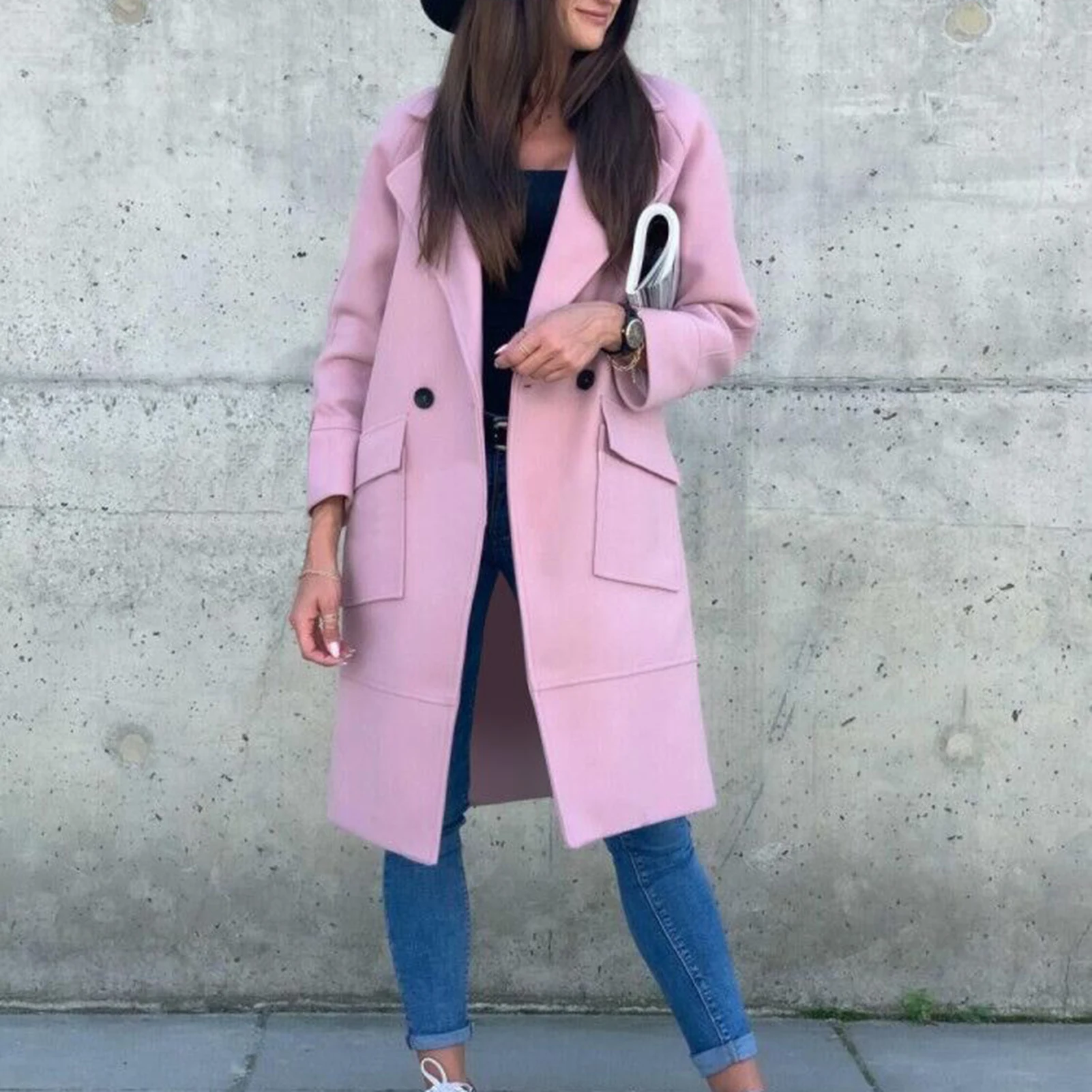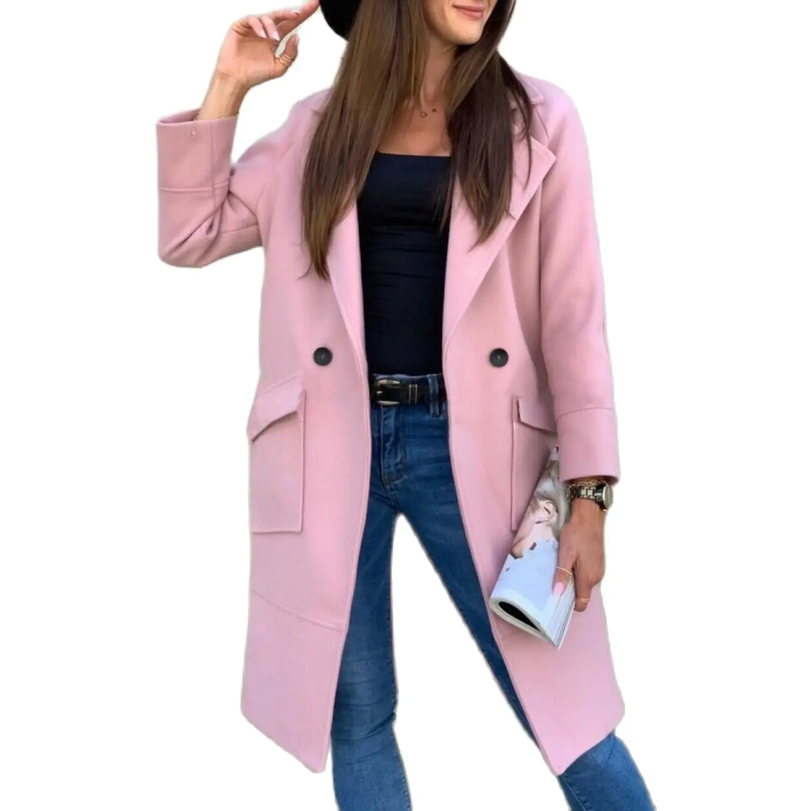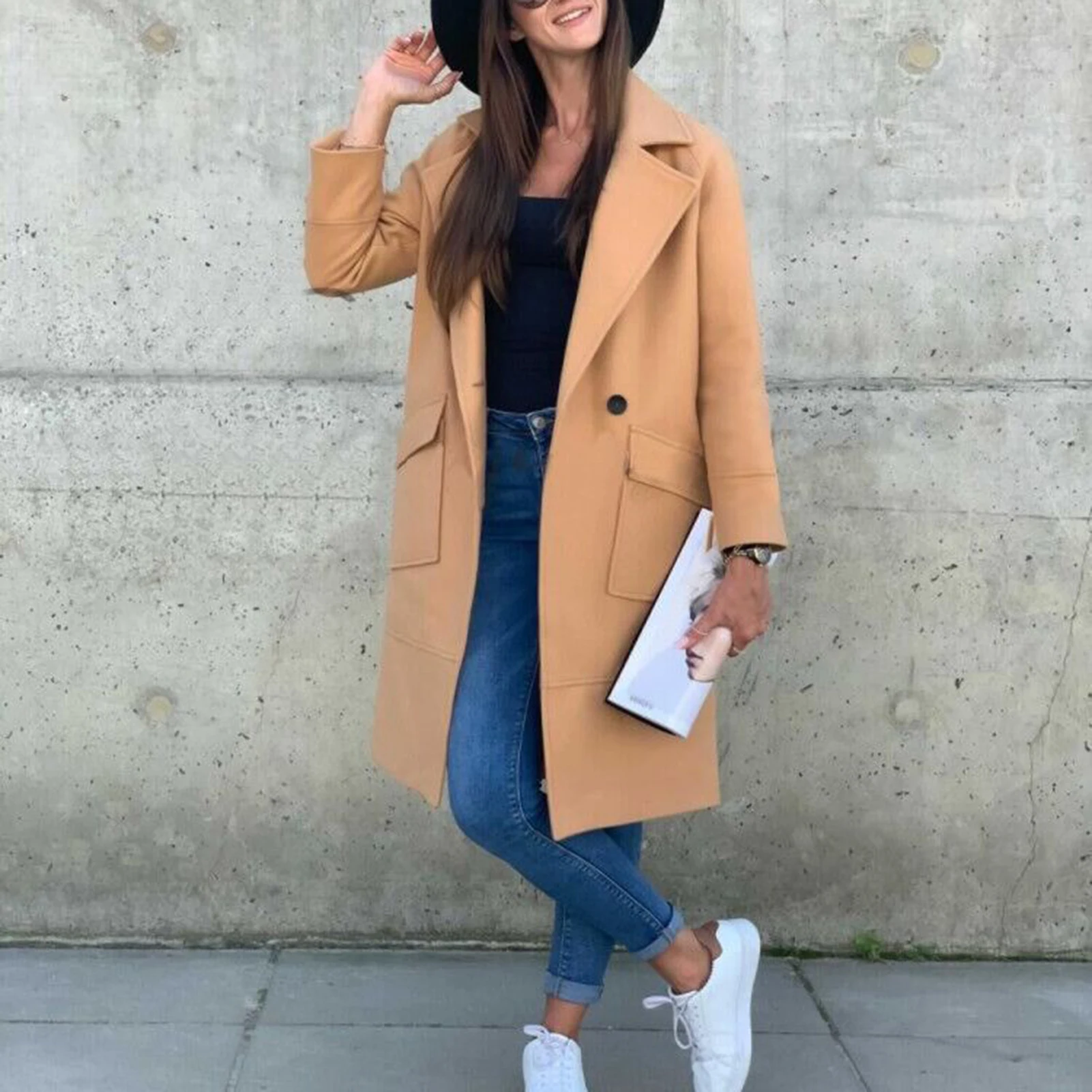Свободная Женская Повседневная куртка, сезон осень-зима 2022, однотонное пальто, длинное пальто с лацканами, пуговицами и карманами, куртка