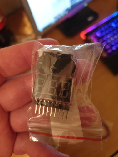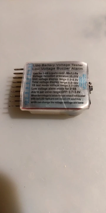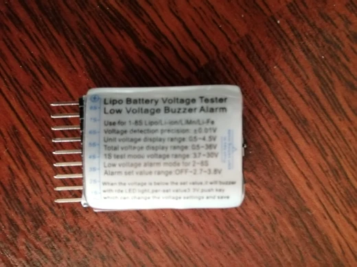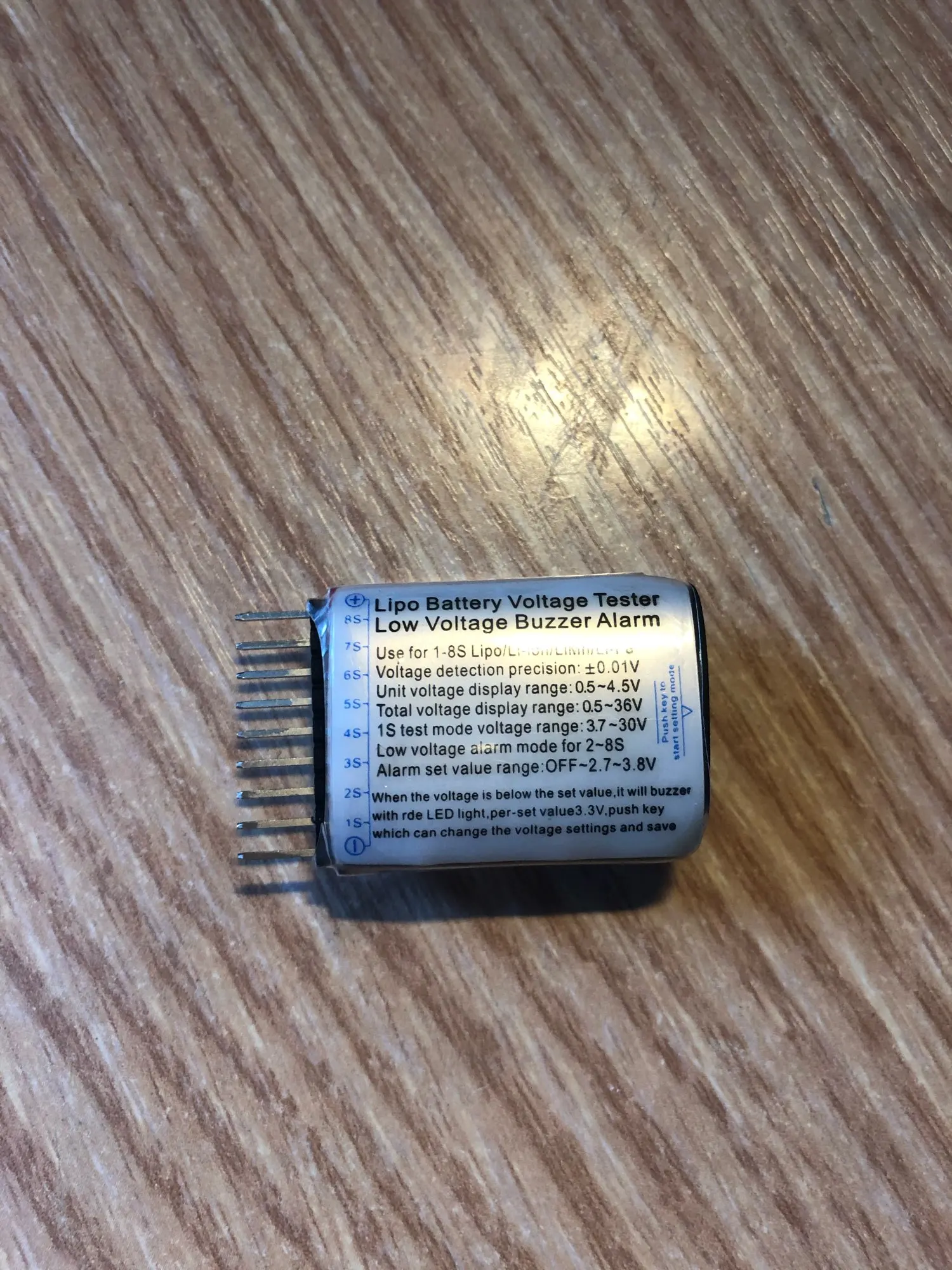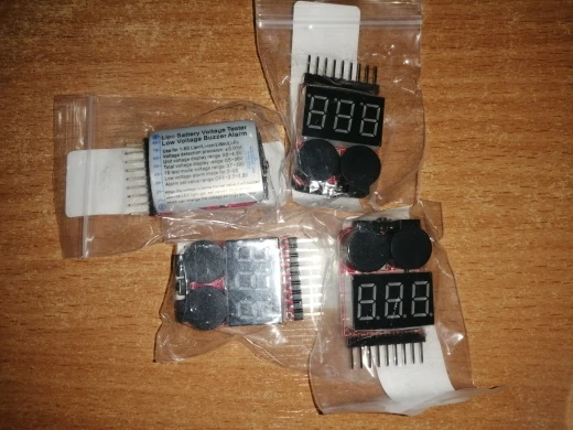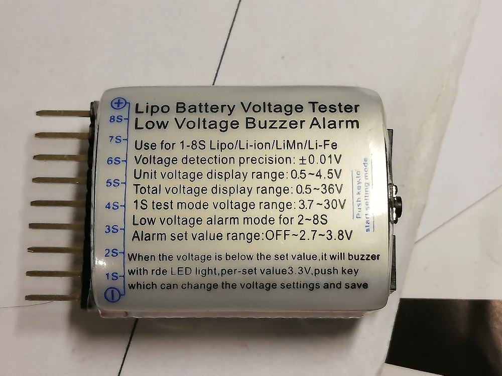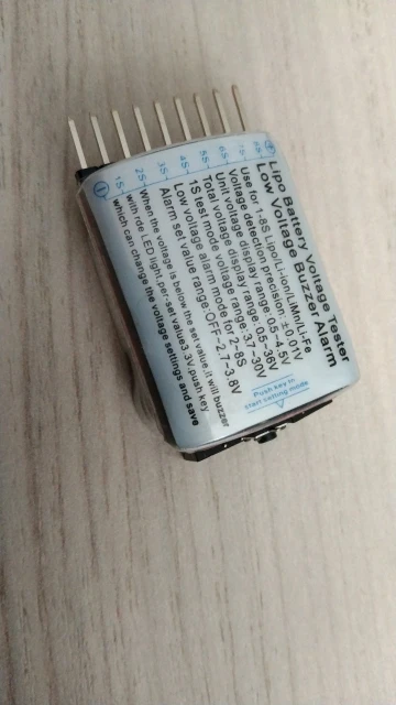 Заказывал 4 штуки, все рабочие. Доставка до России за 20 дней. Расскажу маленький лайфхак зачем мне нужно так много тестеров: Я занимаюсь авиамоделированием и у меня есть много самолётов. Чтобы не портить аккумуляторы от самолётов, и не просаживать из, самолёт нужно вовремя сажать. Этот тестер я настроил на 3,3В и теперь когда у меня остаётся 3,3В на какой-нибудь банке, тестер начинает громко пищать, слышно даже со 100 метров!!!! И чтобы не переставлять один и тот же тестер из самолёта в самолёт, я в каждый самолёт закрепляю свой собственный тестер и удлинняю проводом до аккумуляторного отсека. Это очень удобно, всем рекомендую К сожалению добавить можно только 5 фотографий, поэтому последнее фото с напряжением на второй банке не поместилось