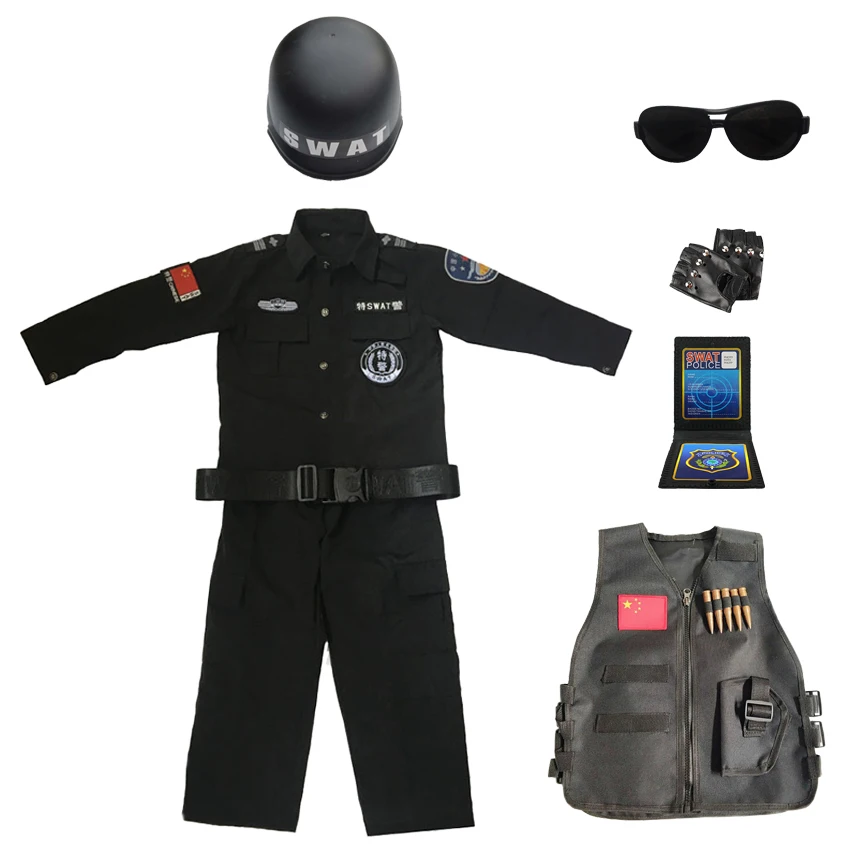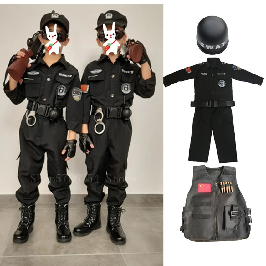 Костюм Полицейского для мальчиков и девочек, спецназ, униформа полиции, костюм для косплея на Хэллоуин, Детский костюм спецназа в стиле милитари для представлений на день рождения