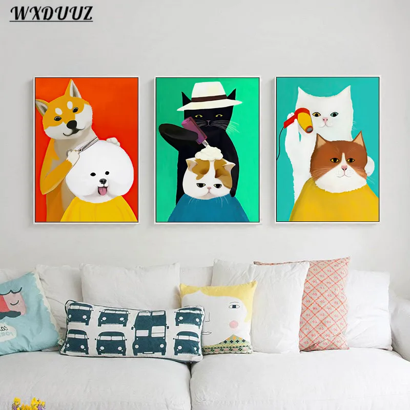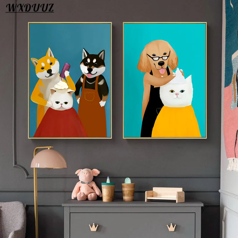 Современный Креативный плакат на стену в скандинавском стиле с изображением мультяшных животных, черный и белый цвет, Картина на холсте для детской комнаты