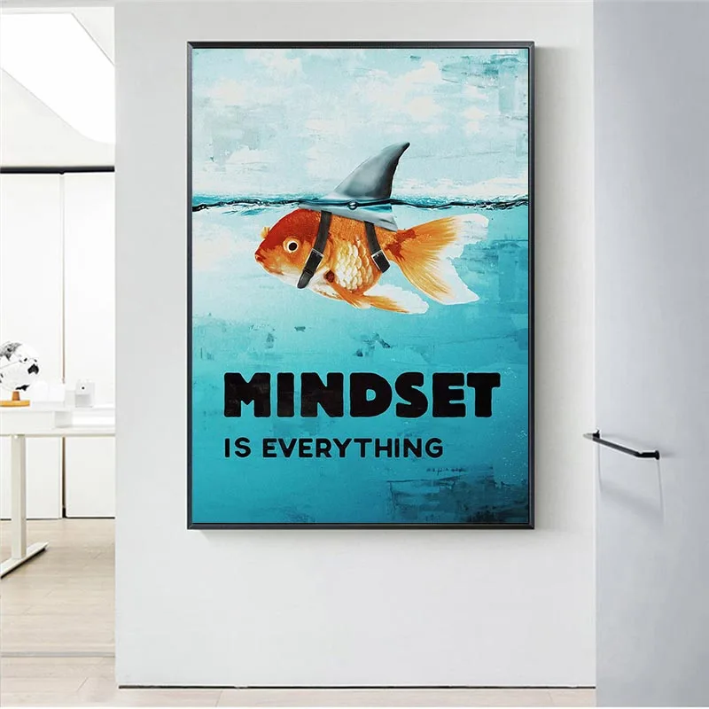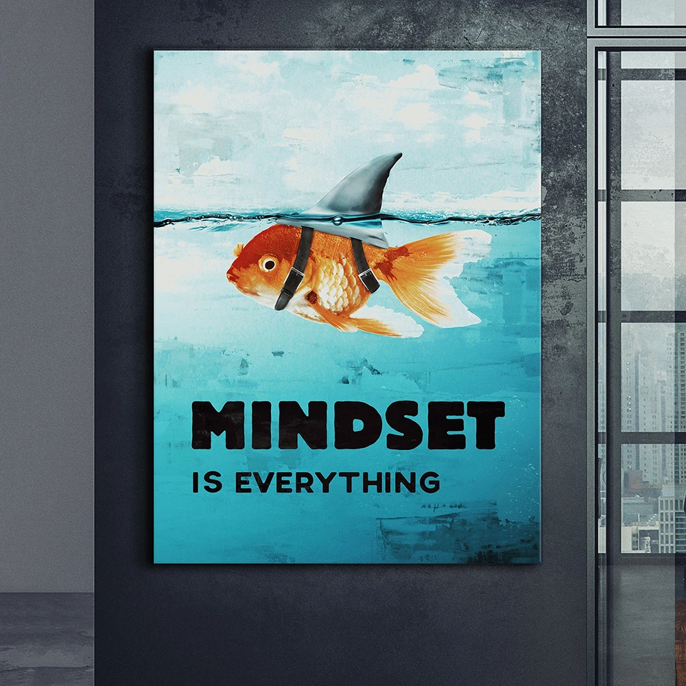 Мотивационная Картина на холсте в скандинавском стиле, постеры и принты с изображением рыб Акулы Mindset Is all, Настенная картина для украшения дома