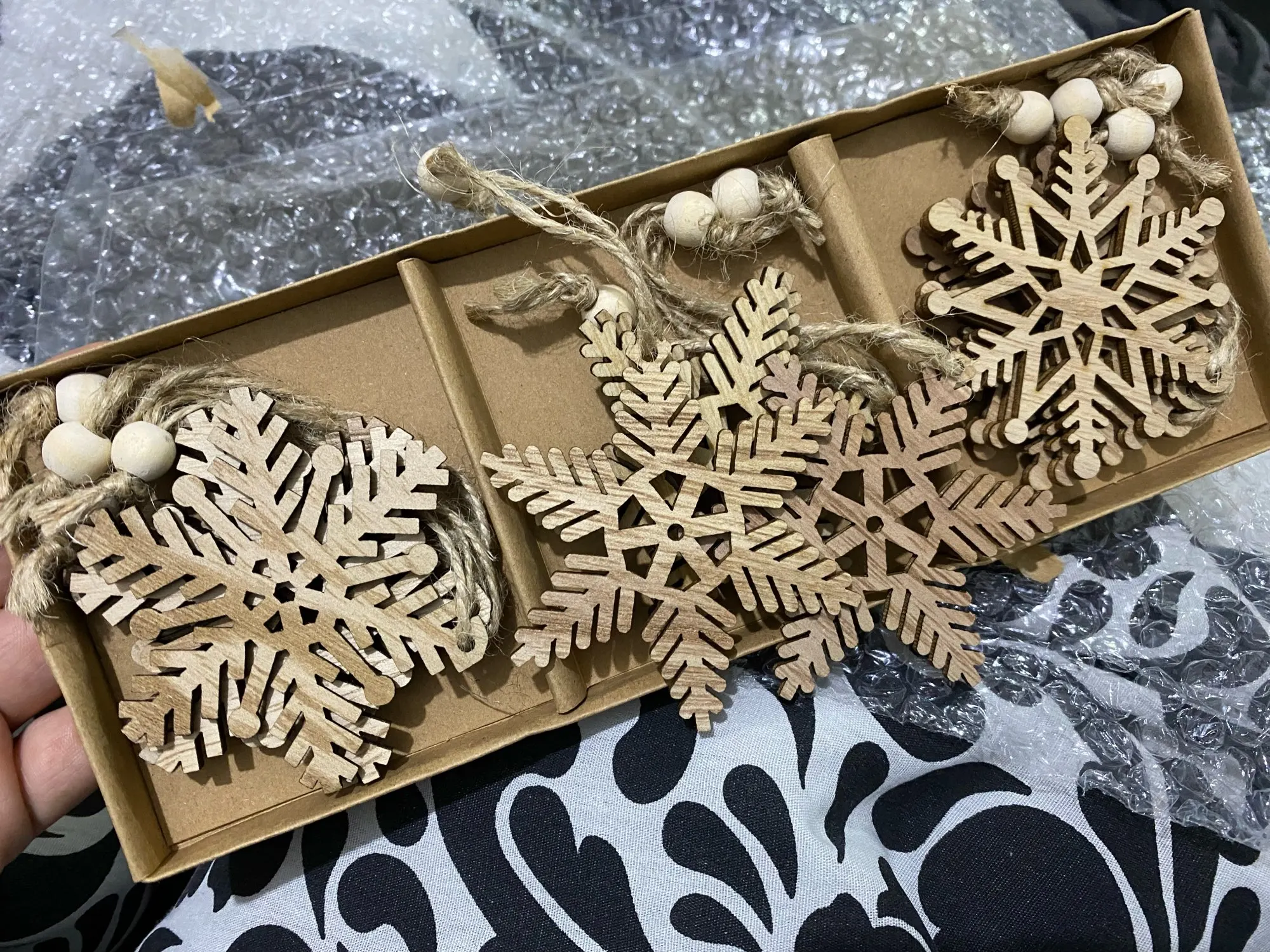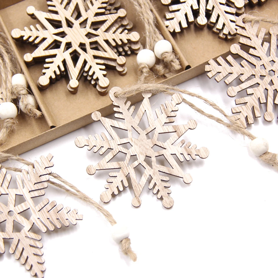 12 шт.корт., деревянные подвески в виде снежинок для рождественской елки, подвесные украшения, украшения для творчества, детские подарки, товары для вечерние