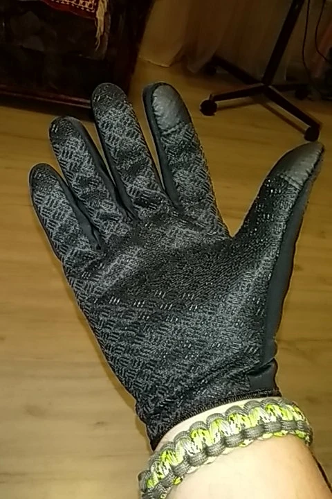 чутка не по размеру, не хватает длины, чтобы больше запястье закрыть.., но перчатки хорошие по качеству, телефоном пользоваться можно, руль не скользит.