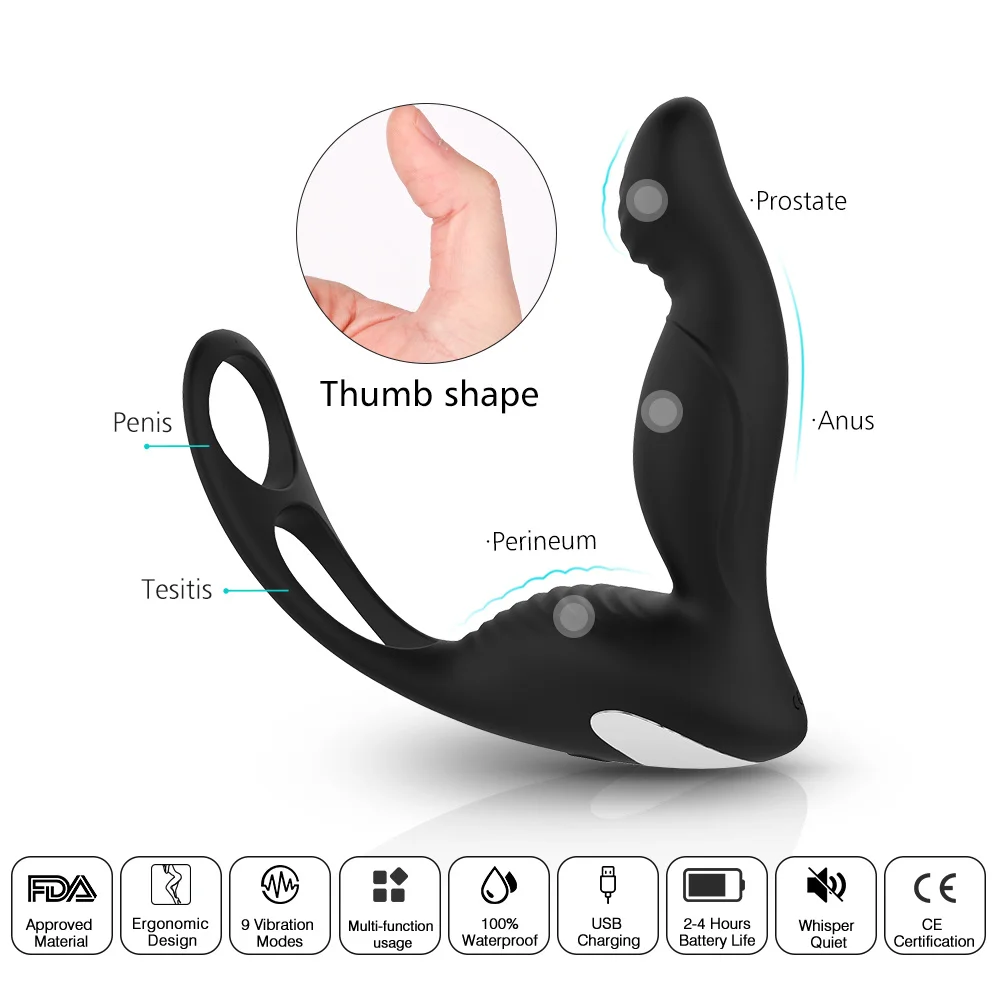 Мульти-использование: кольцо для пениса, массажер простаты, задержка эякуляции, Анальный вибратор