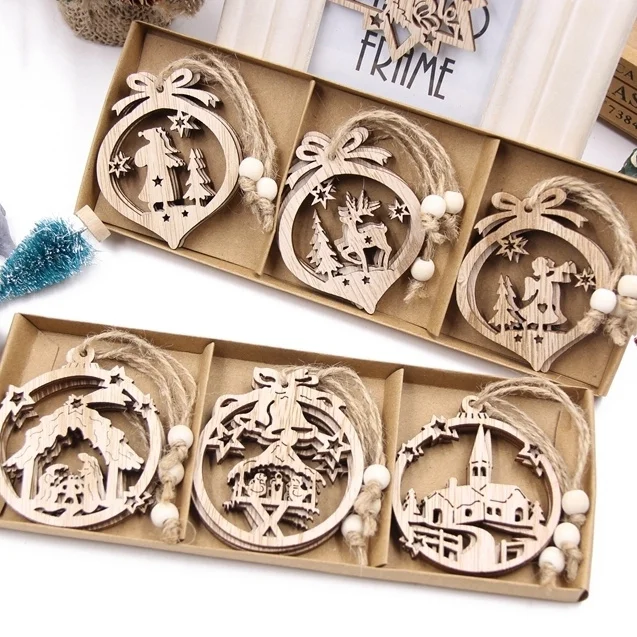 12 шт.кор. полый Рождественский Деревянные Подвески Винтаж для рождественской вечеринки украшения Рождественская елка с орнаментом детский подарок для дома и сада