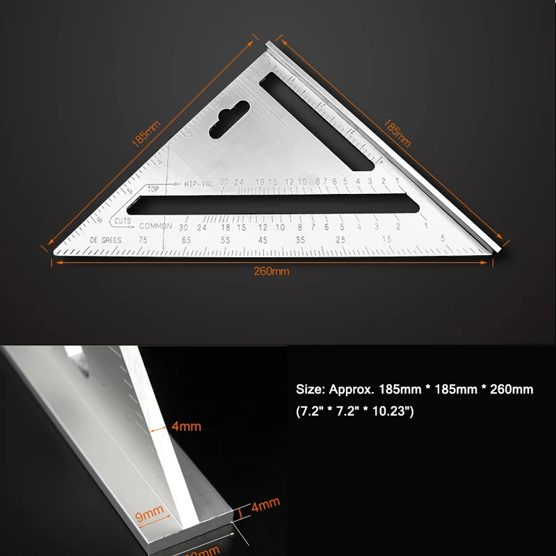 7 дюймов алюминиевый сплав треугольная угловая линейка транспортир дюймов/метрическая скорость квадратная измерительная линейка митер обрамление здание обучающий инструмент