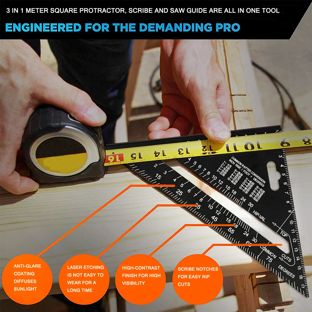 Многофункциональность: треугольная линейка, метровая квадратная, Транспортировочная, Пильная направляющая, все в одном инструменте.
