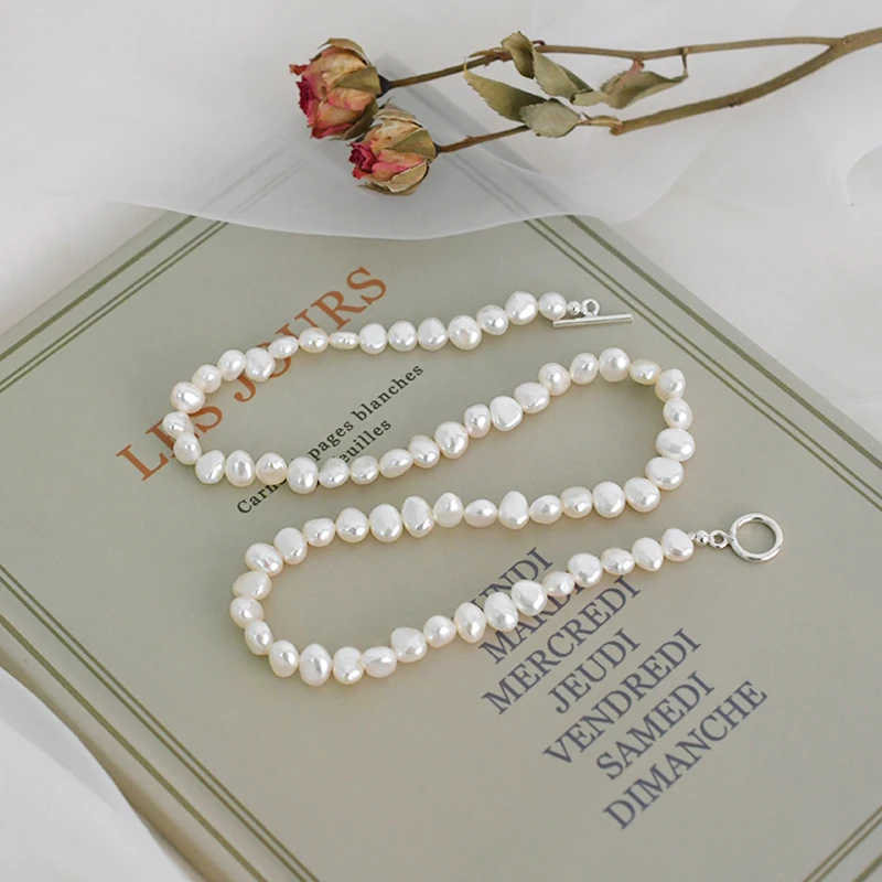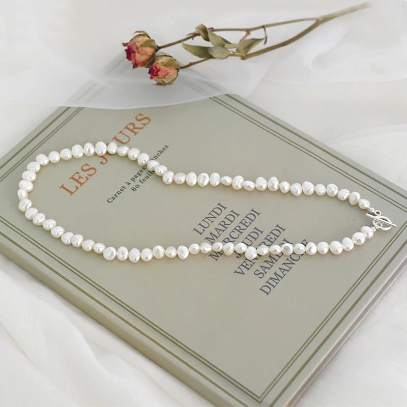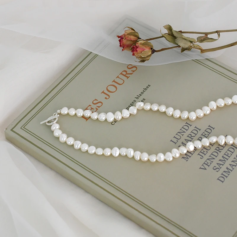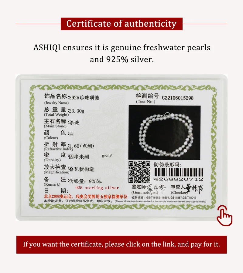 Женское жемчужное ожерелье ASHIQI, из натурального пресноводного жемчуга, застежка из серебра 925 пробы, 6-7 мм